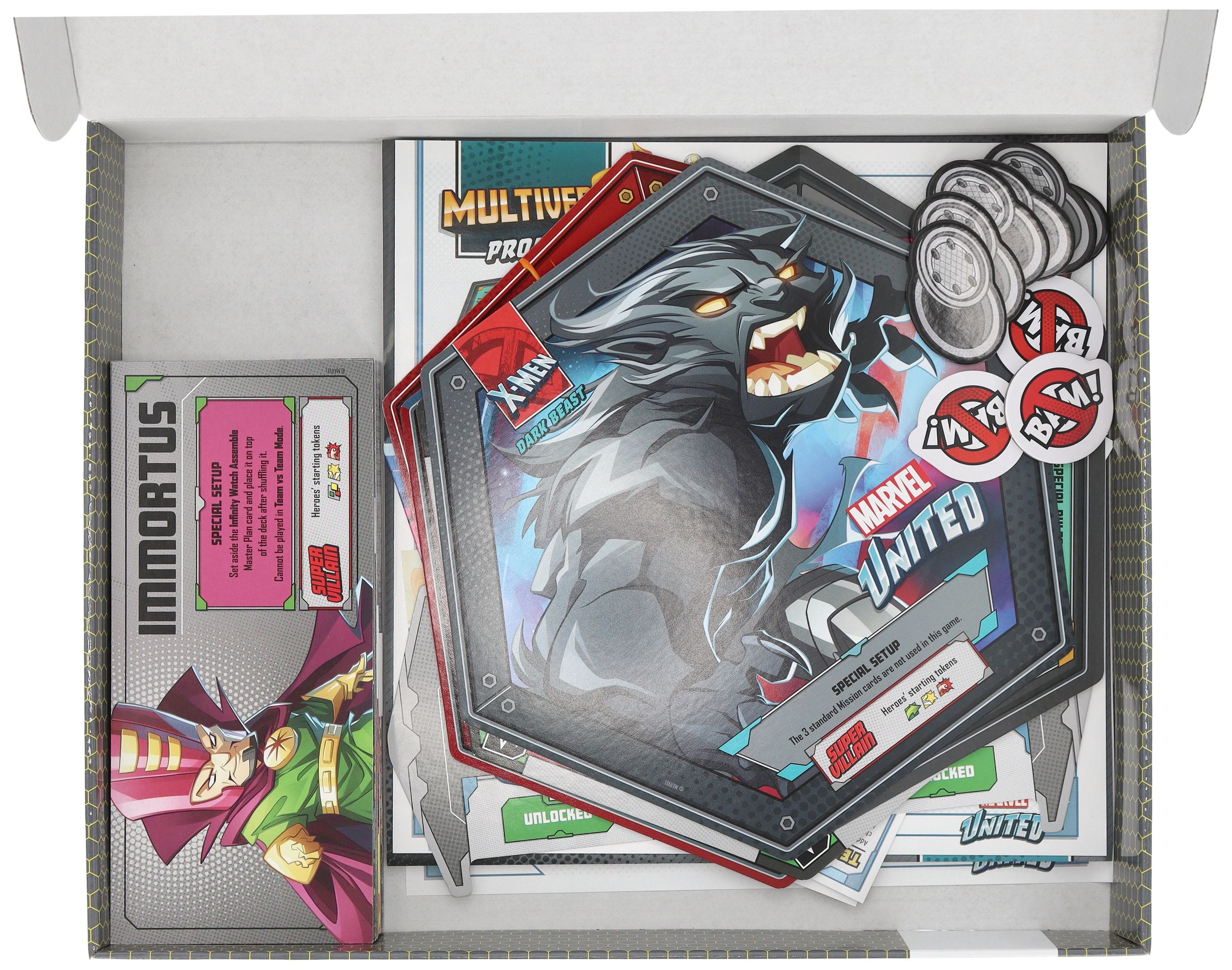 - Complete storage and transport solution for Marvel United: Multiverse. The set offers space for all game content from the following boxes of the Omniverse Pledge: