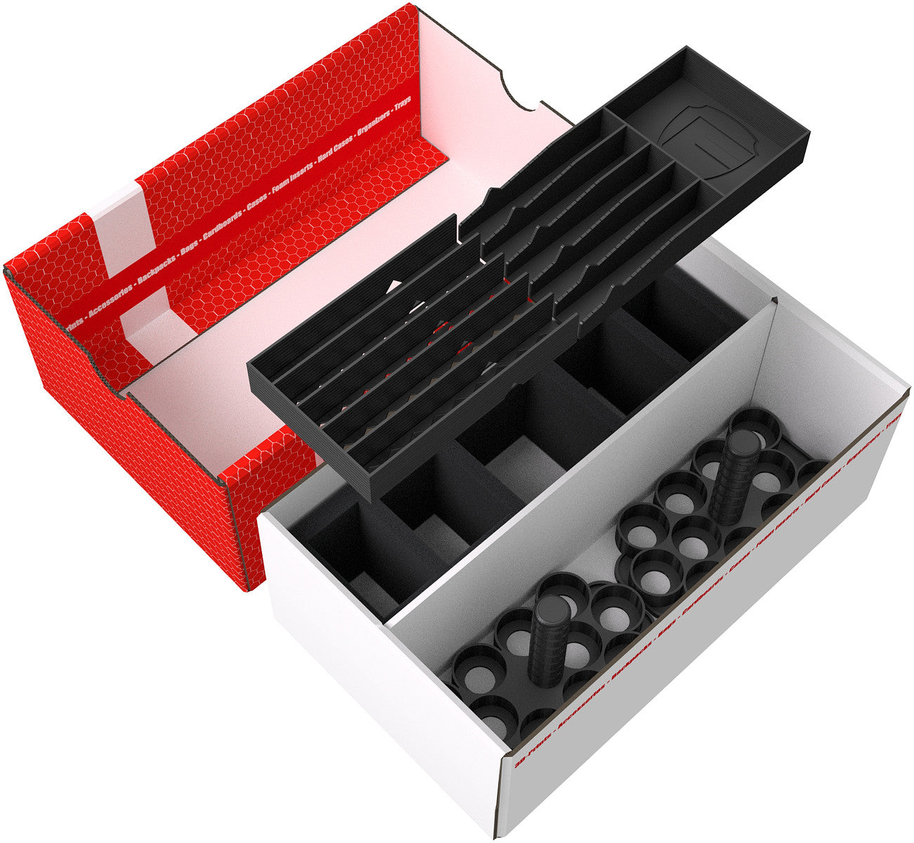- 1 foam tray with five compartments for miniatures (HOMFHN070BO)