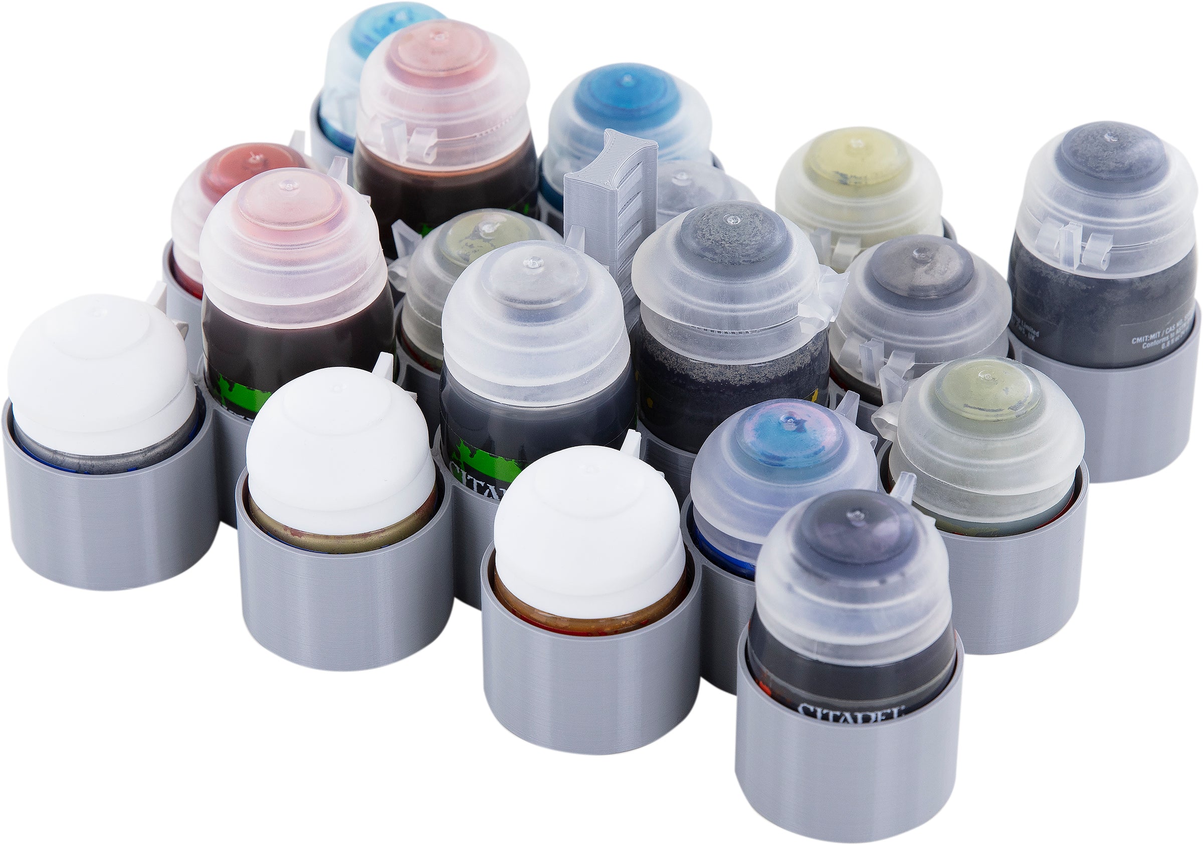 On the table, the rack ensures that your colors stand stable and secure. This prevents unpleasant incidents with overturned paint pots. Your workplace remains tidy and clean and you can devote yourself to your models in a relaxed manner.