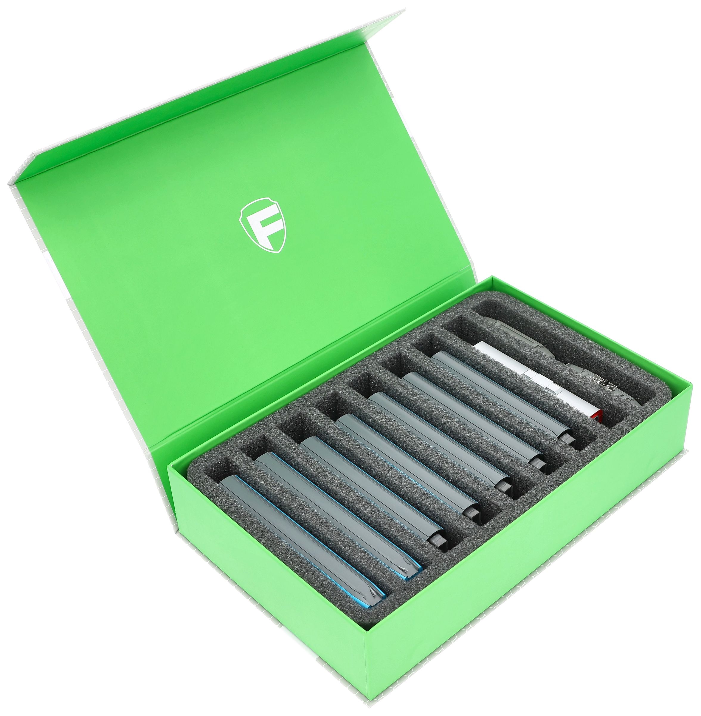 Of course, the insert fits exactly into the compact Magnetic Box. Thanks to the low weight, this is the optimal solution for storage and transport. The box is made of robust, coated solid cardboard. Two built-in magnets on the front allow it to be closed securely and easily so that nothing gets lost during transport.