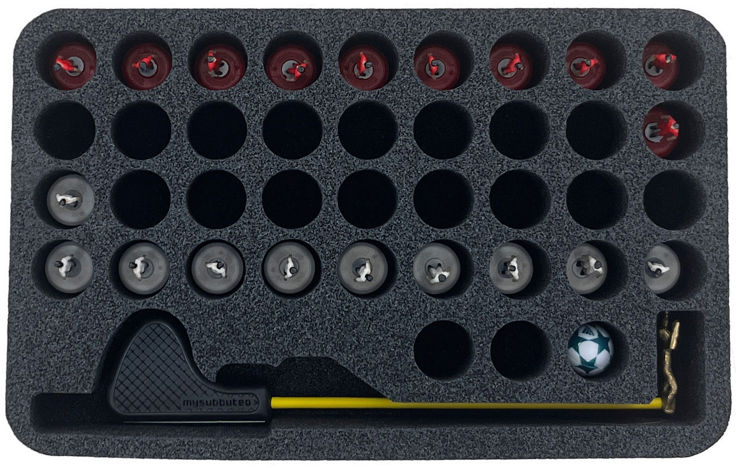 Because of the custom-fit cut and the foam, your player figures always arrives at the tournament table in a presentable, ready-to-play manner. Especially for those who attach great importance to individual details like gloves and jersey colors, this tray offers the best protection.