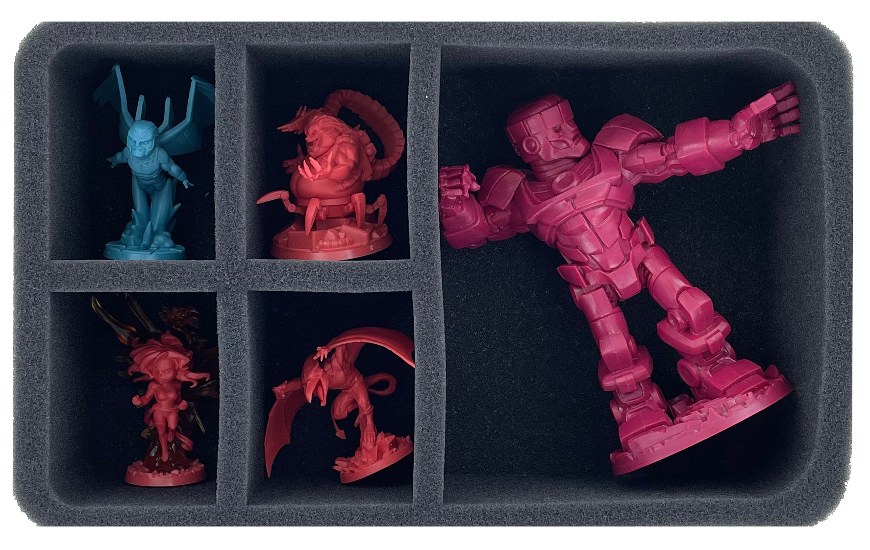 The figures are well protected in soft foam. Sensitive details are thus safe from damage. Precisely fitting compartments ensure that the models do not slip around on the go. Thus, the painted miniatures are also spared from scratches, abrasion, and chipping paint.