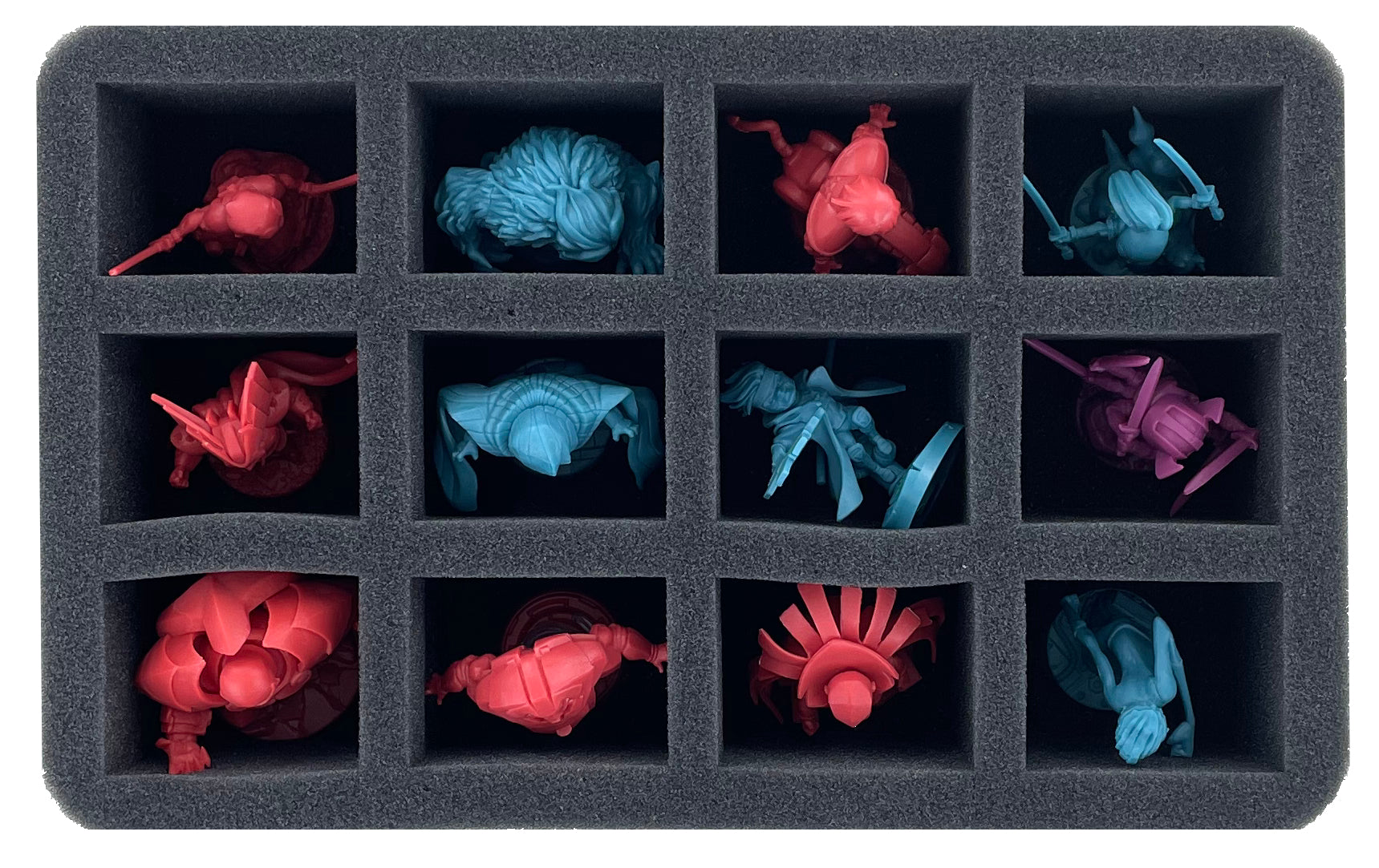 - 1 Half-Size foam tray with 12 compartments for miniatures (HS070I012BO)