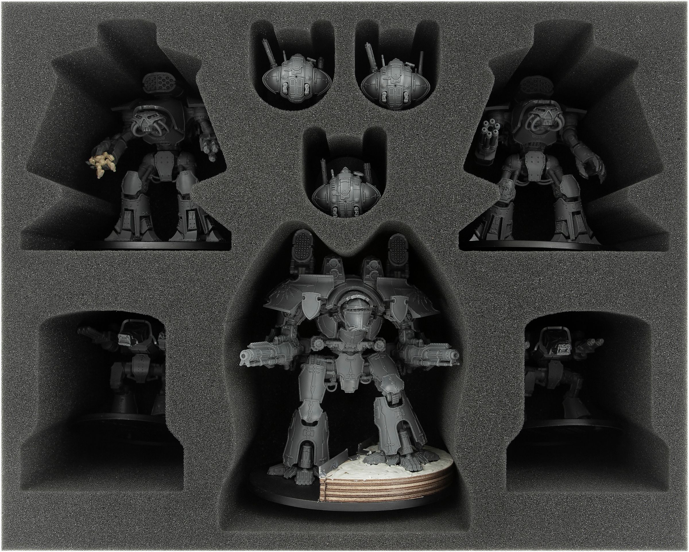 - 1 Full-Size foam tray for 1 Warlord, 2 Reavers, 2 Warhounds, 3 Questoris Knights (FSMEHL110BO)