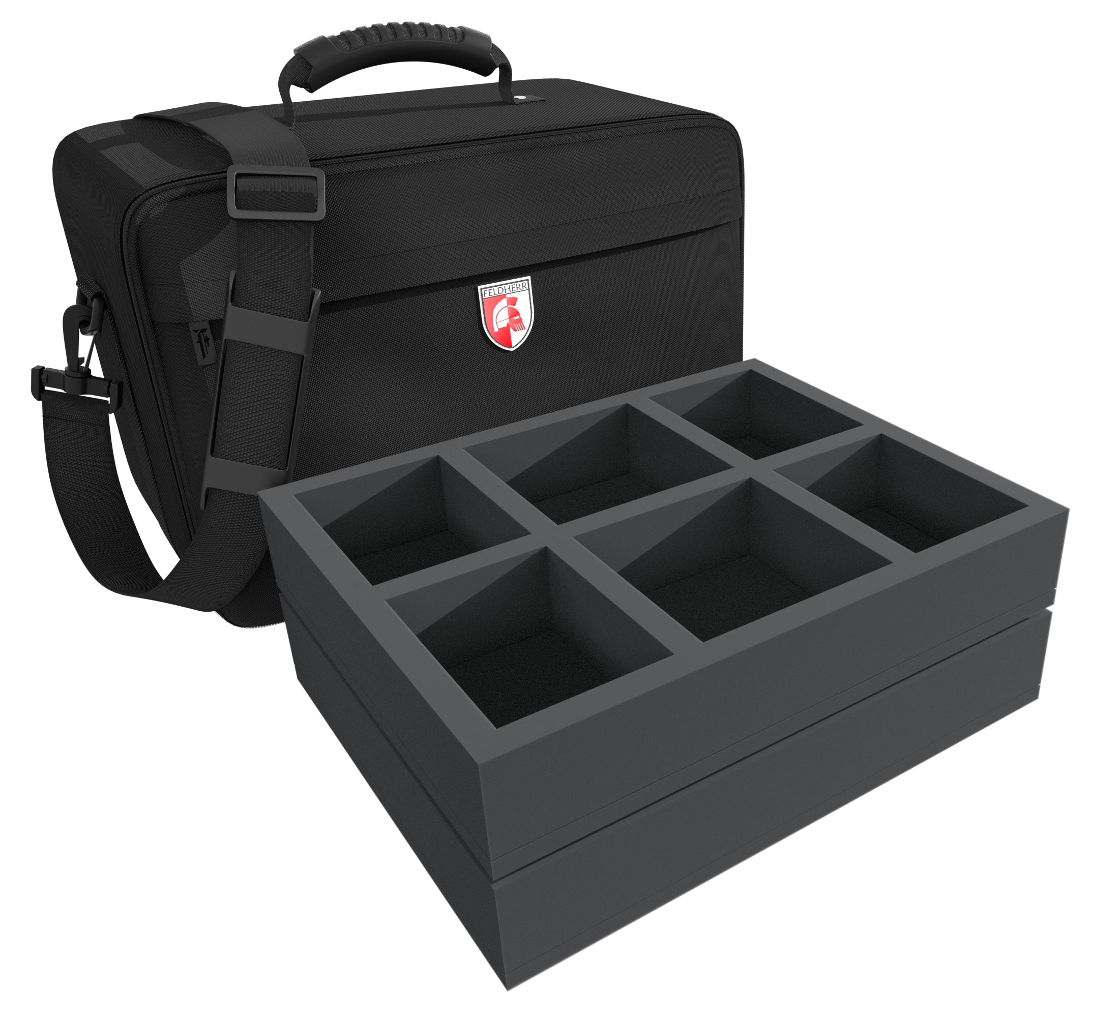 Finally, a topper made of convoluted foam ensures that your squadrons are safely packed all around and that everything is perfectly equipped for transport. More accessories, such as the rulebook or the folded play mat can be stowed on top or in the compartment at the front of the bag.