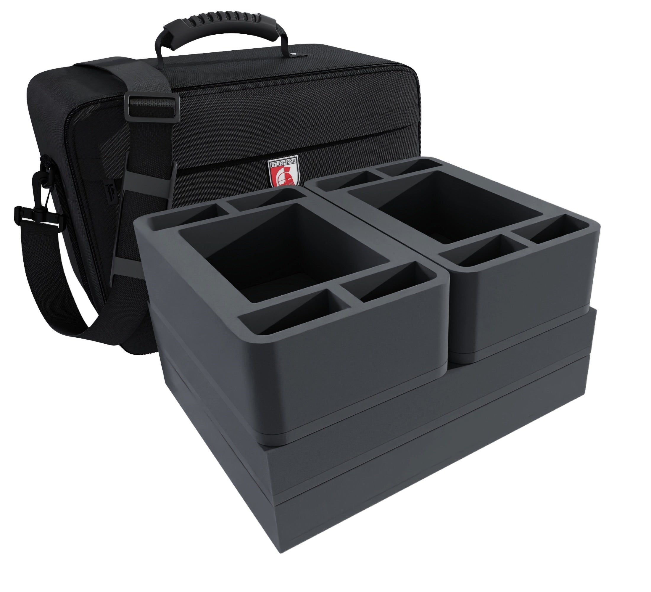 Your miniatures are optimally protected in this MAXI PLUS bag with custom Feldherr foam trays. With them, you can safely transport up to 96 warrior models to the next battle.