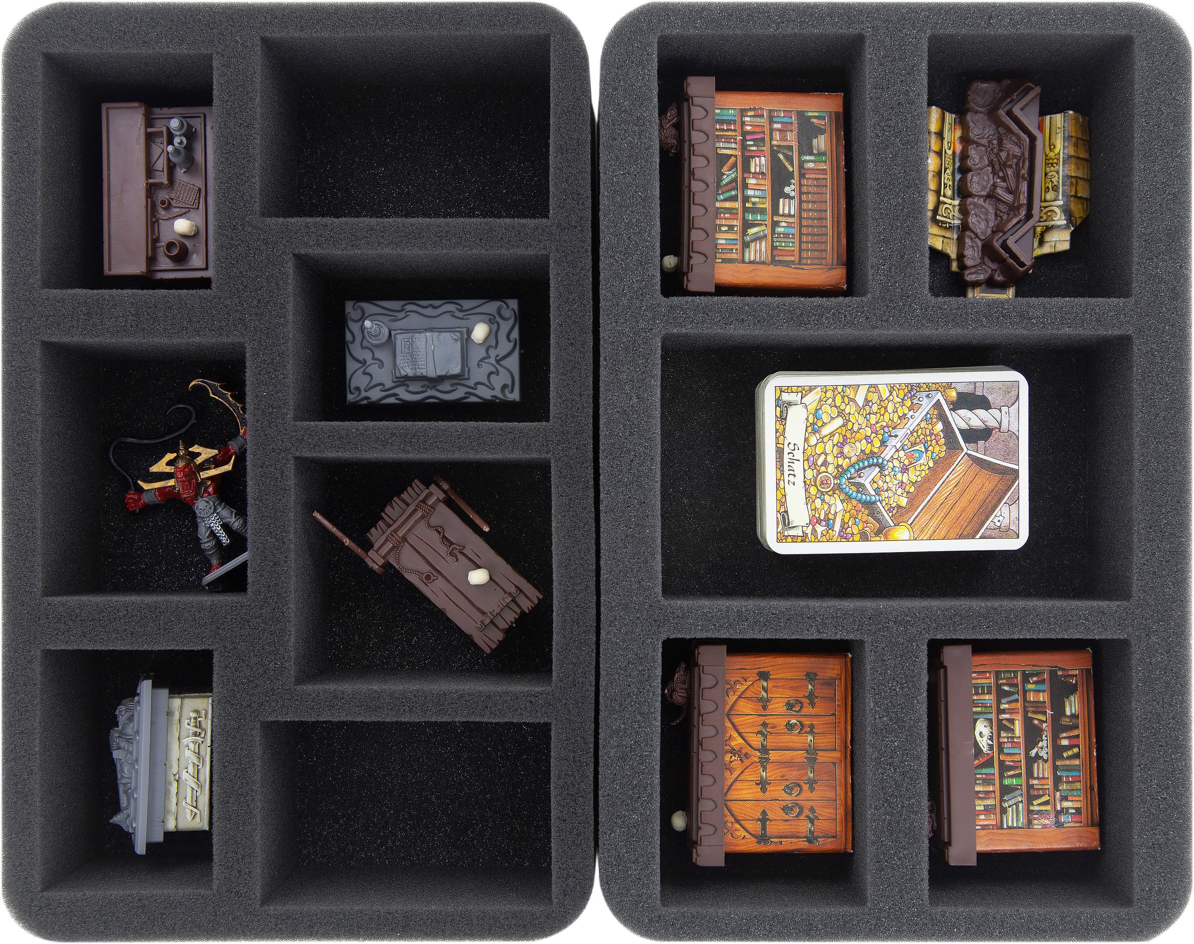 - 2 Full-Size foam trays each with 32 compartments for miniatures and doors (FSMEDS040BO)