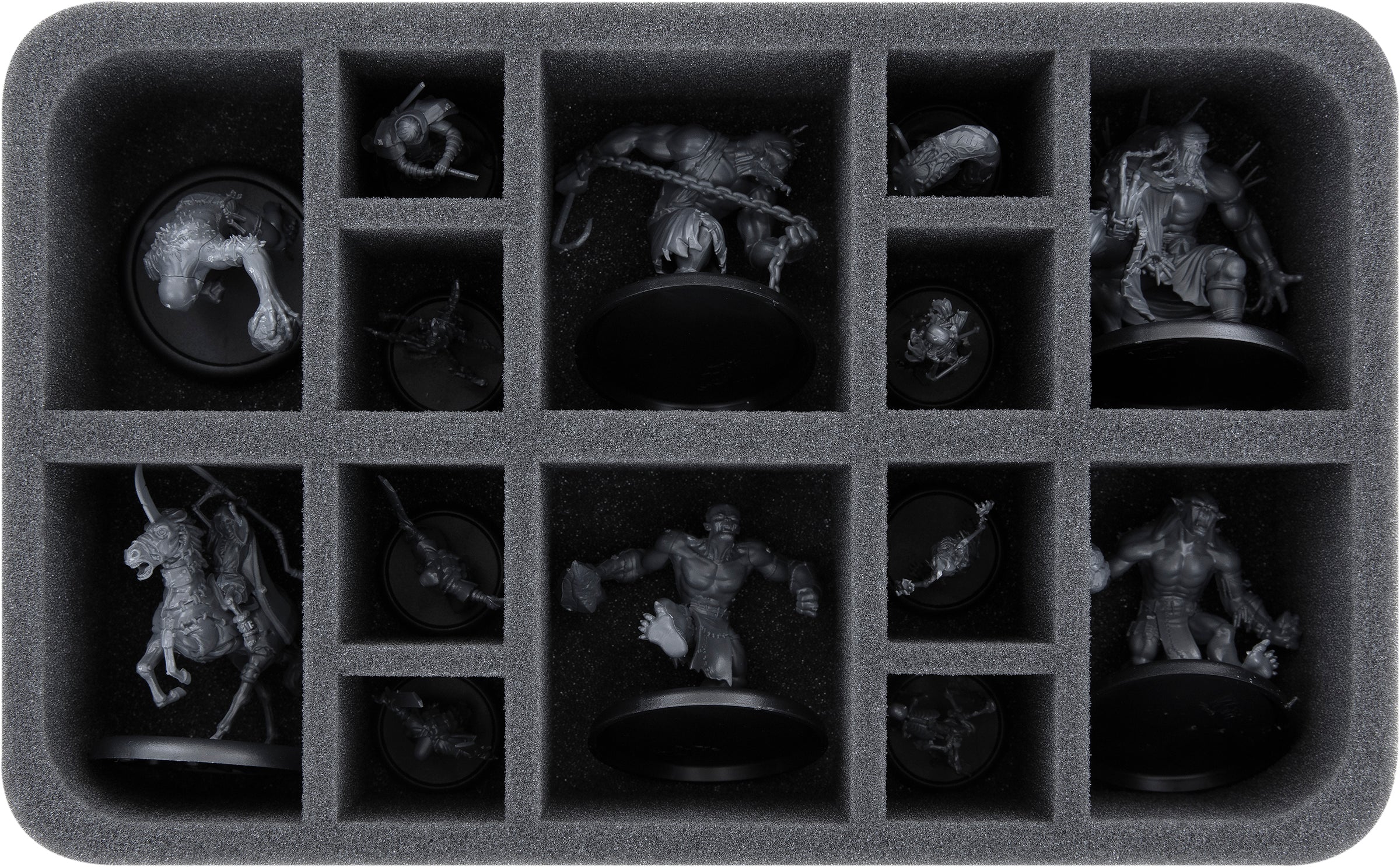 - 2 Half-Size foam tray with 14 compartments for bulky miniatures like Gigant, Thoon and Dead Rider (HS065A012)