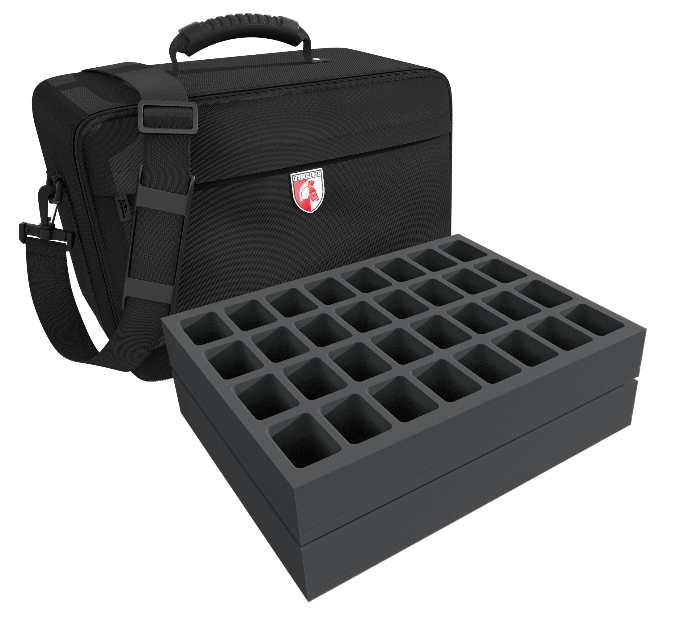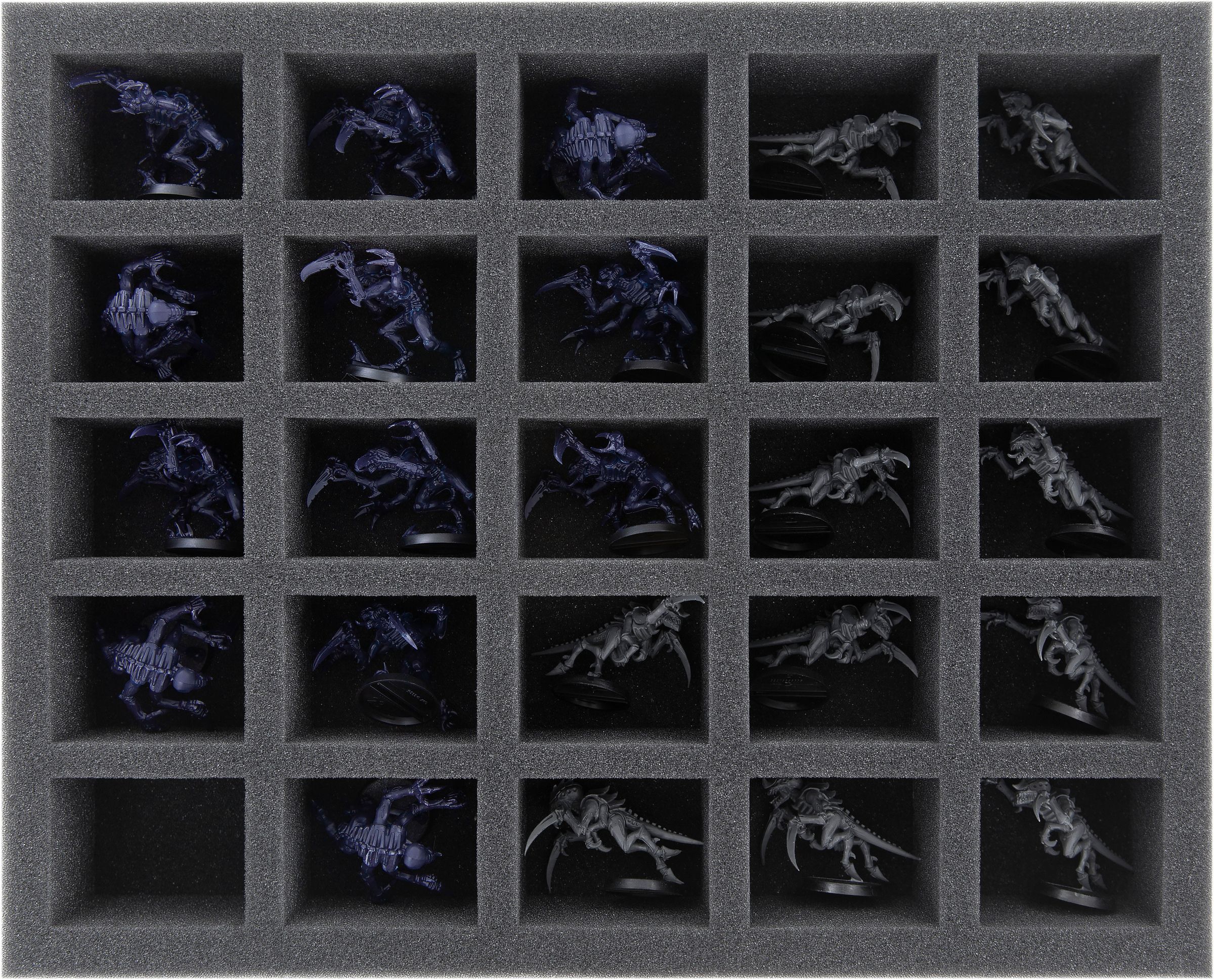 - 1 foam tray with 25 compartments for standard infantry miniatures (FSLQ050BO)