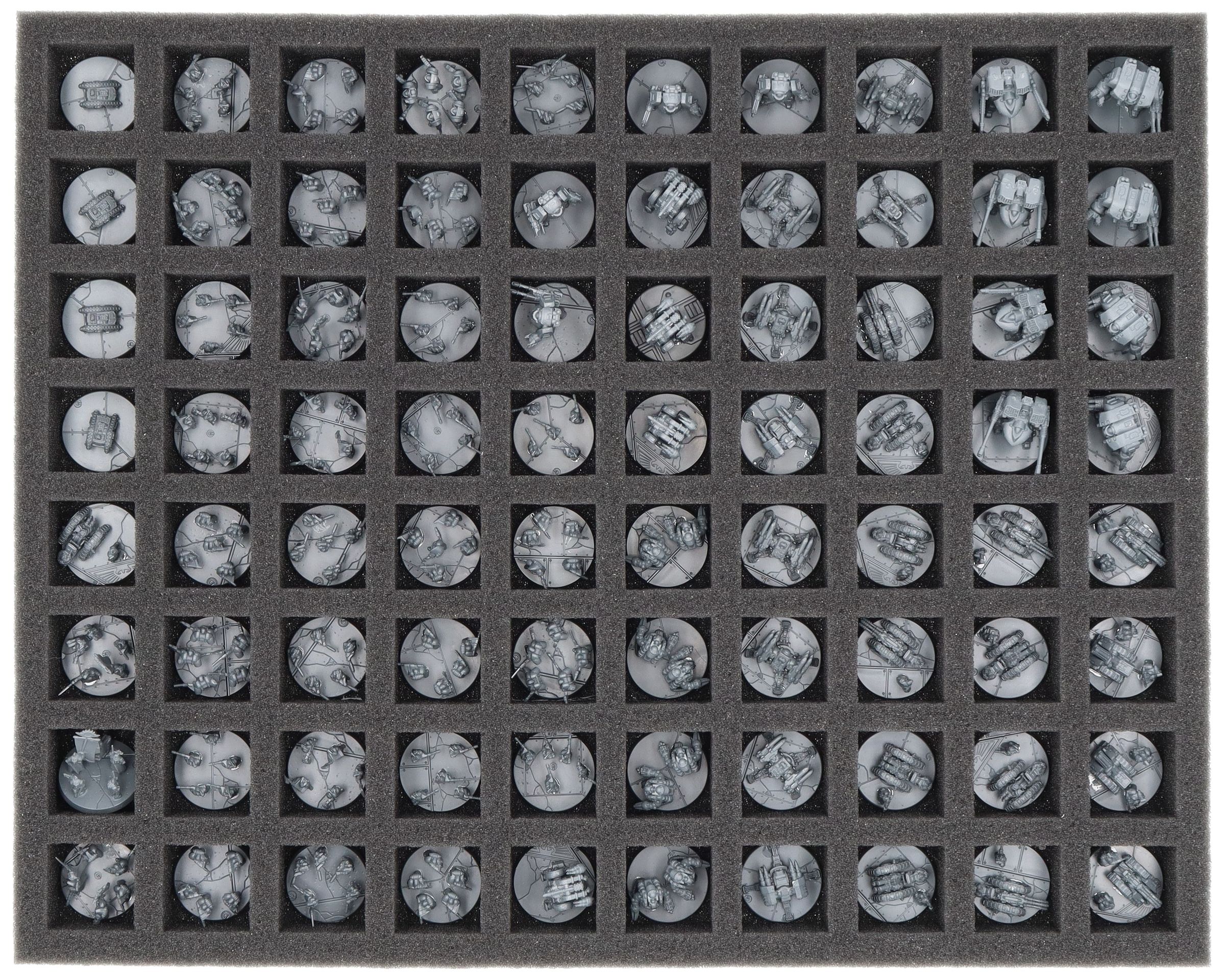 - 1 Full-Size foam tray with 80 compartments for infantry models like Space Marines, Leviathan Deradnoughts, Solar Auxilia and miniatures with similar dimensions (FS035A029)