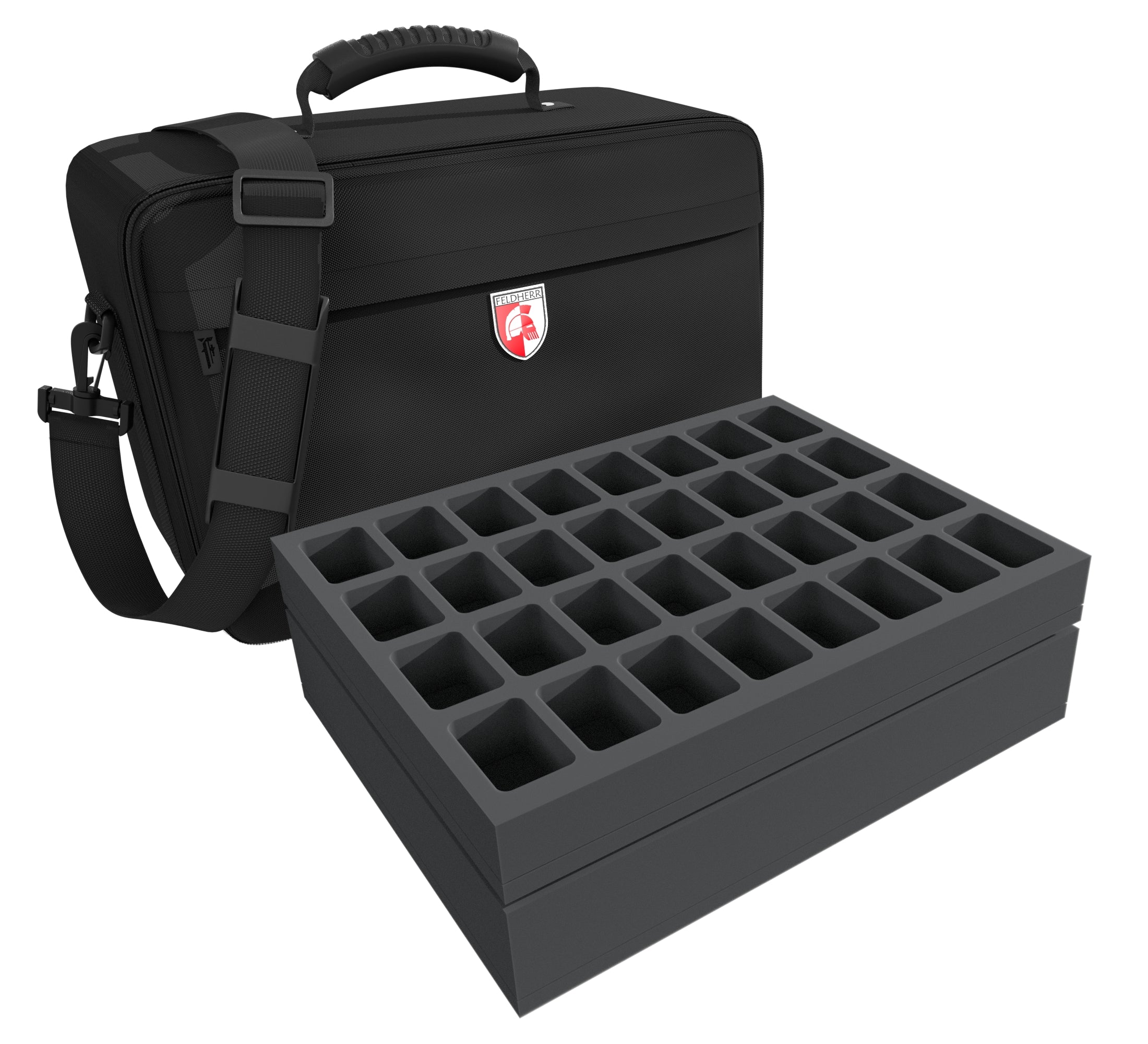 This MAXI bag, filled with matching Feldherr foam trays, holds up to 79 miniatures of your crews.