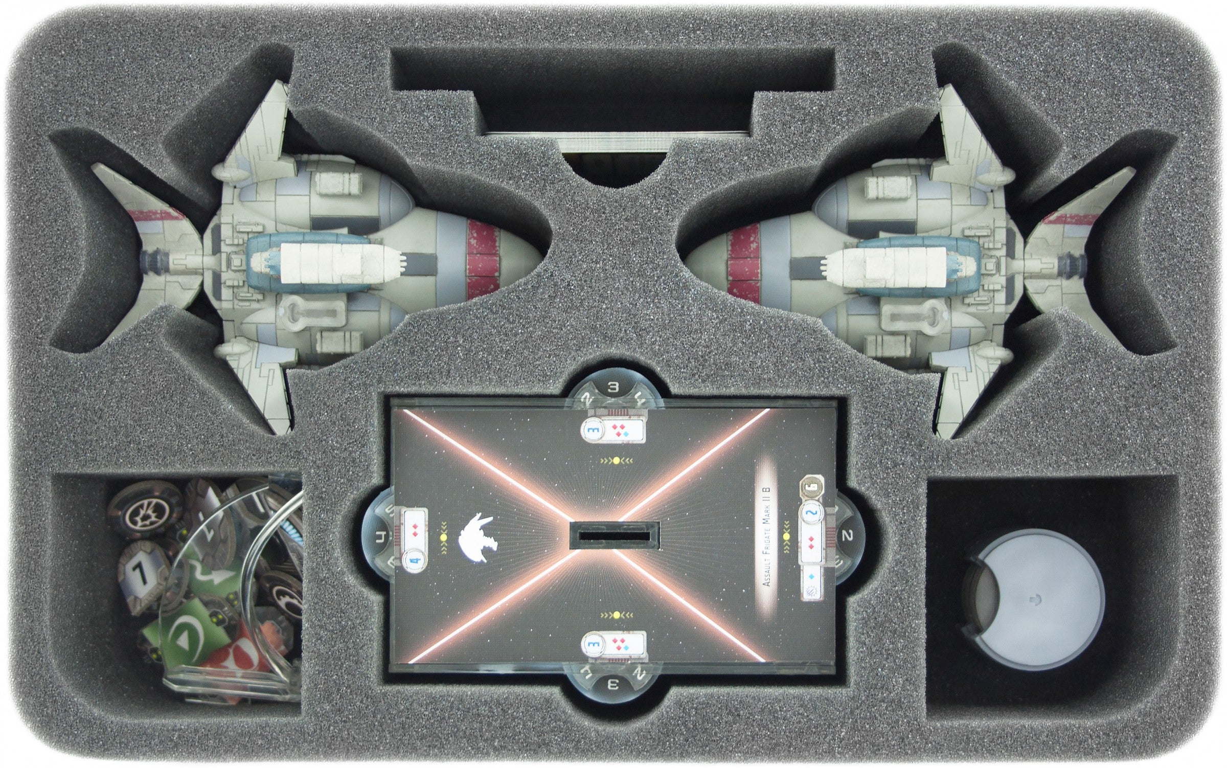 Feldherr Maxi Bag for Star Wars Armada. The Bag comes with foam trays for the entire Rebel Fleet of Wave 1 and Wave 2. In the Bag are only foam trays for Rebel Ships.