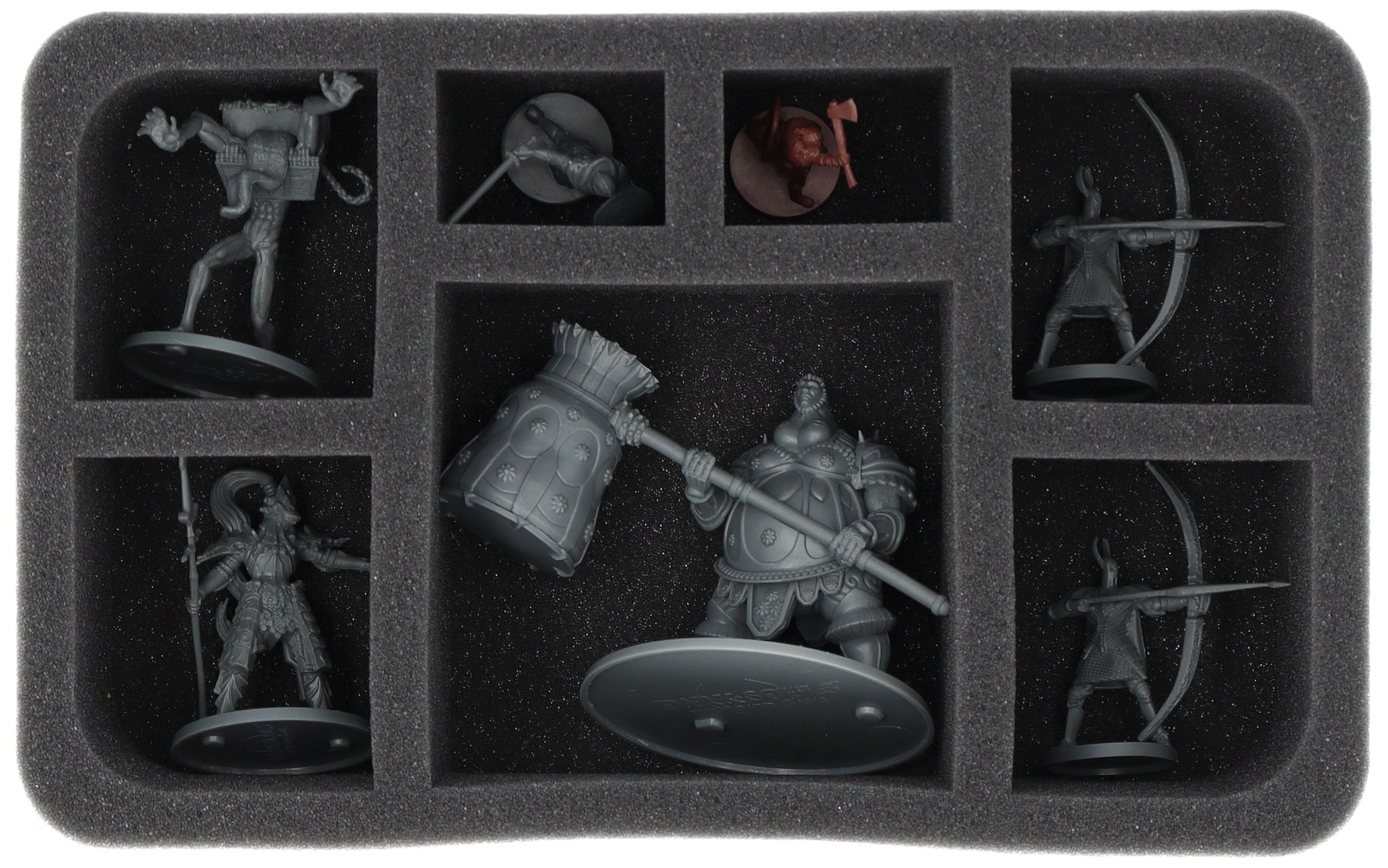 - 1 Half-Size foam tray with 7 compartments for miniatures and game material (HSMEME080BO)