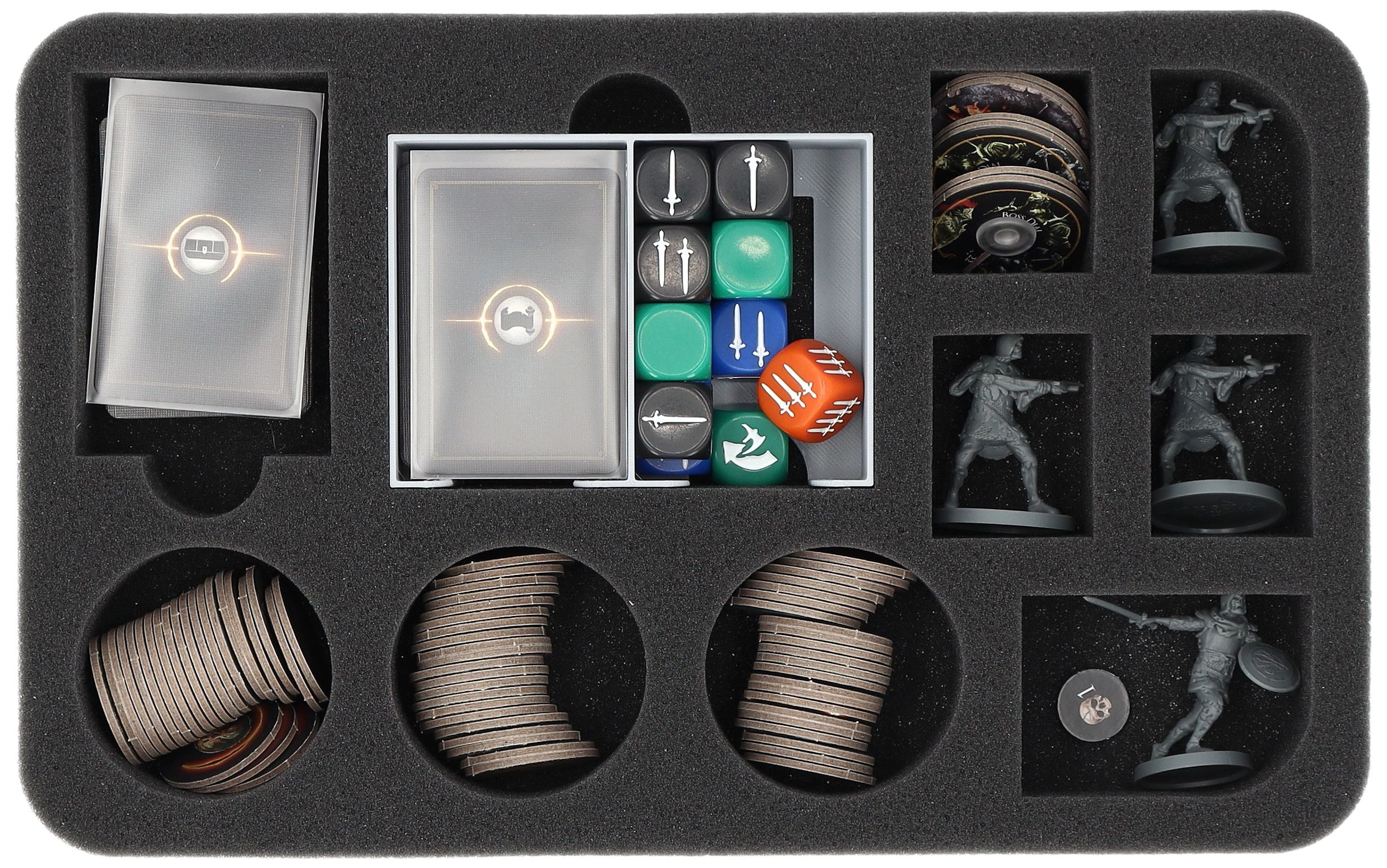 So you're always ready and prepared for your next adventure in Dark Souls: The Sunless City, this Feldherr Medium Plus case offers a thoughtful and convenient storage solution. With custom-fit foam inserts and 3D-printed card holders, it keeps your miniatures and all your game material organized and protected.
