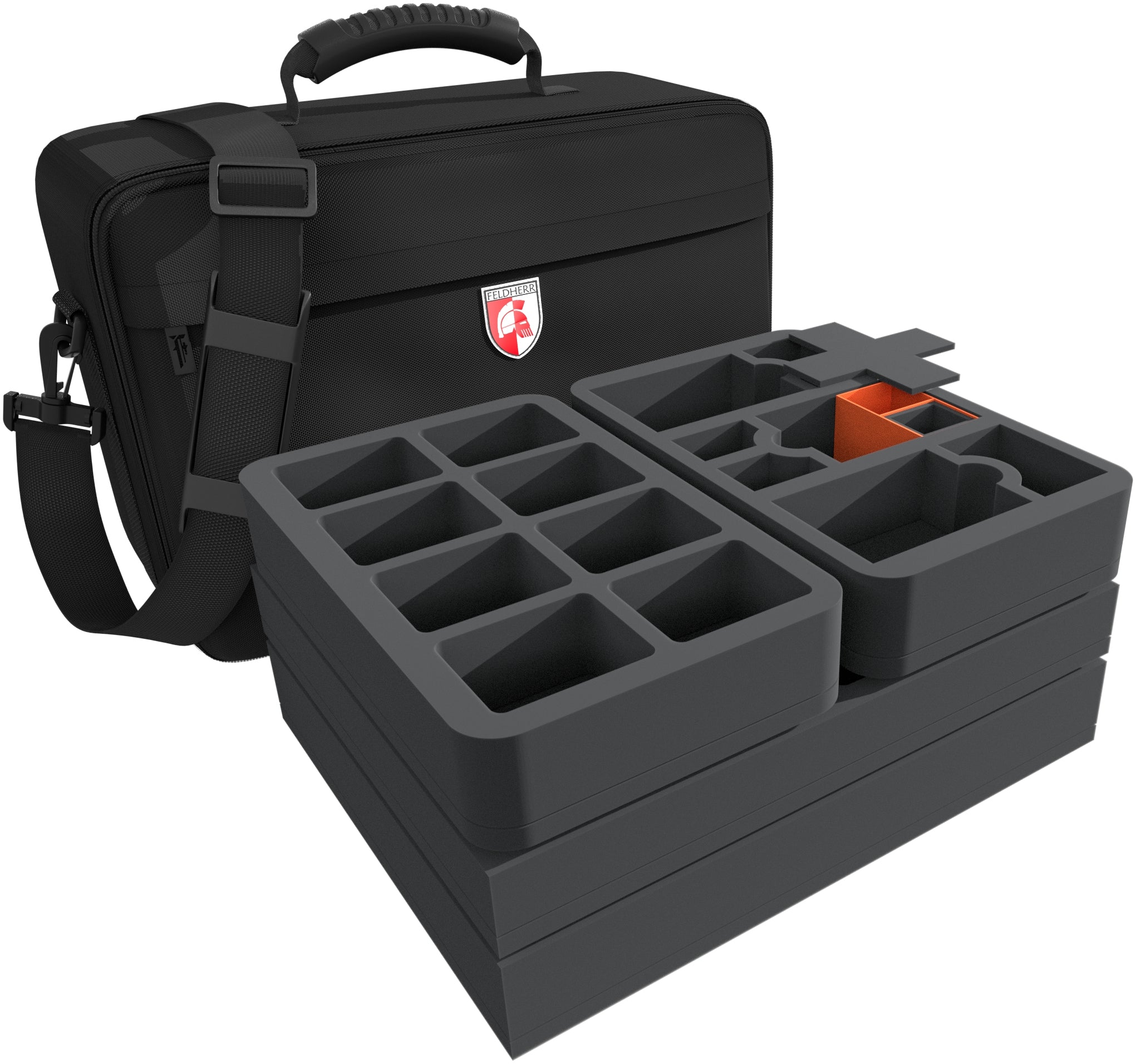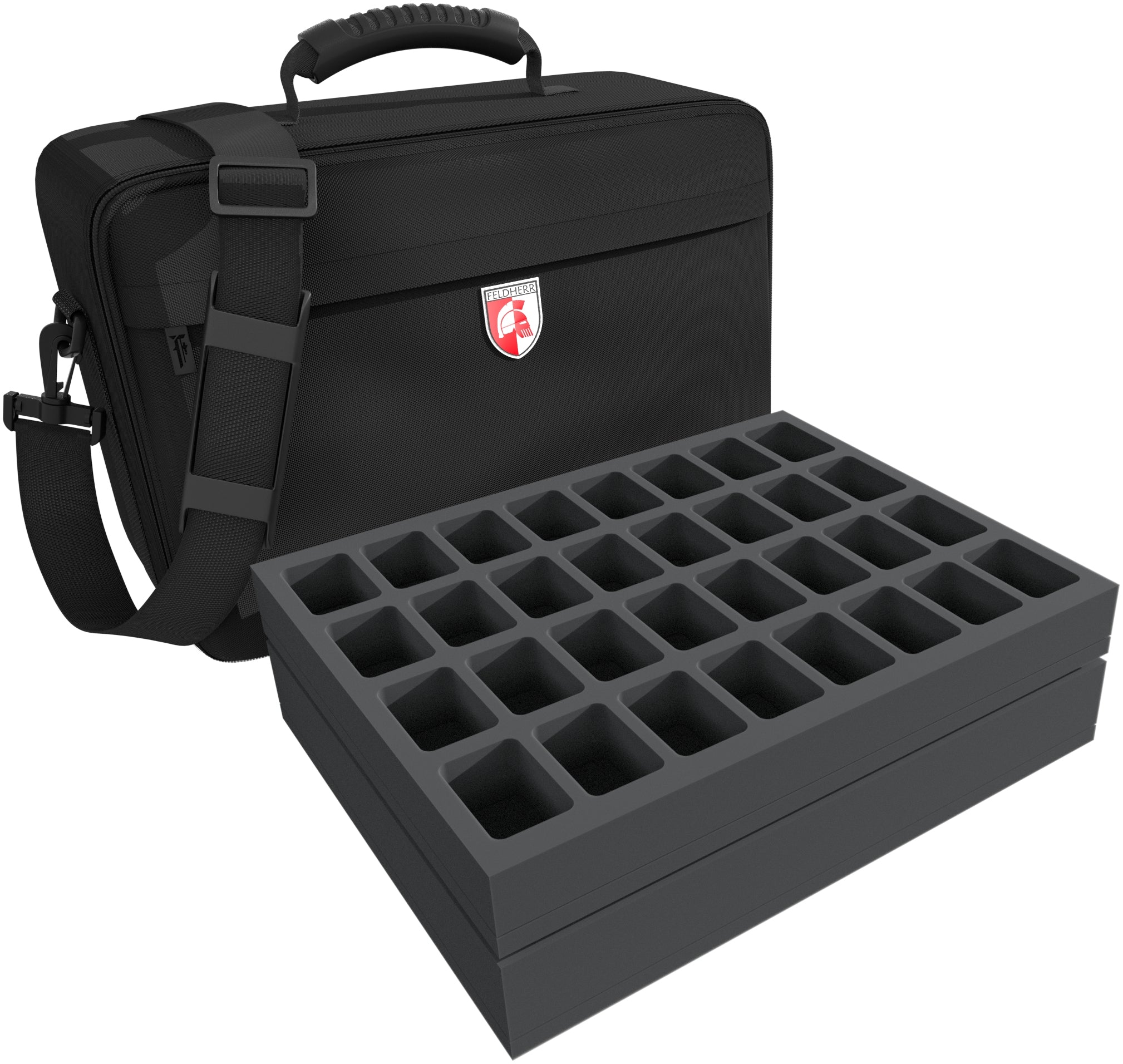 The Feldherr MEDIUM PLUS bag is made of particularly robust fabric and ensures that its contents are optimally preserved from external influences. Padded side panels and a reinforced base additionally ensure that your miniatures are optimally protected from external influences, even when transported by car or train. It can also be locked and secured with an optional padlock.