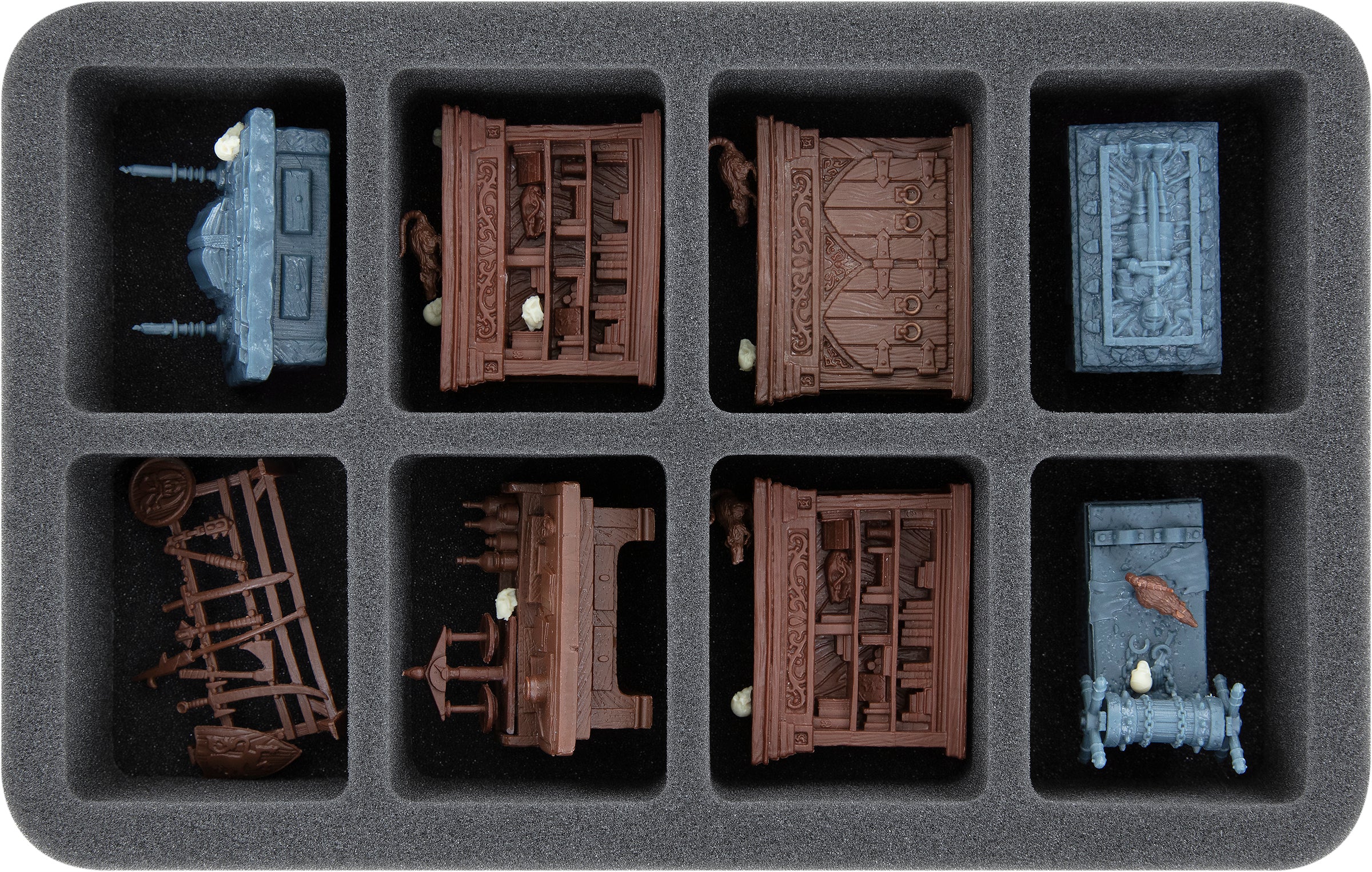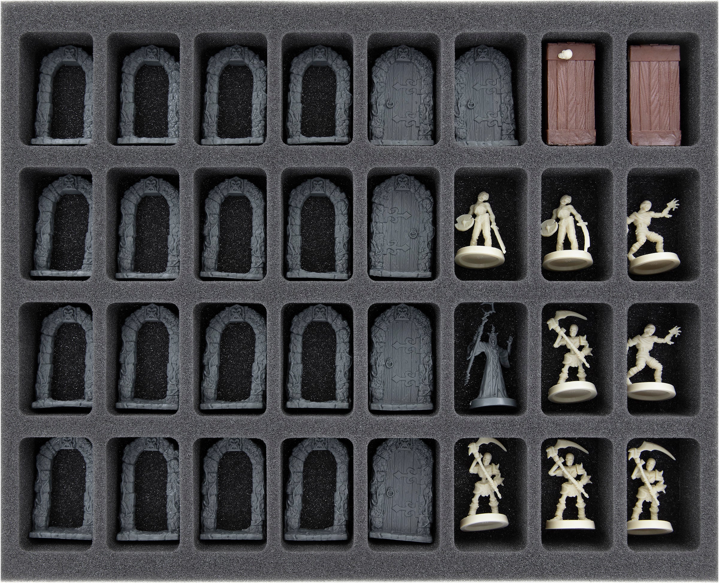 - 1 Full-Size foam tray with 32 compartments each for enemy miniatures, furniture and doors (FSMEDS040BO)