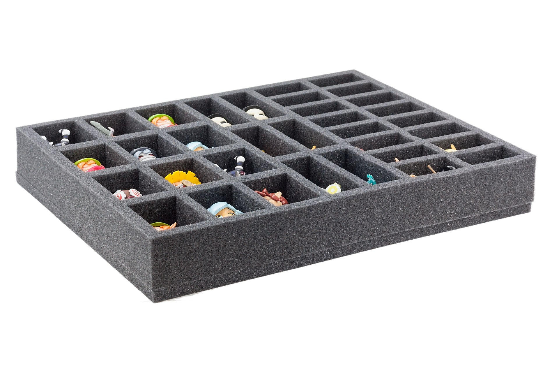 La espuma Krosmaster tiene 34 ranuras para su Kosmaster Miniatures - en 4 tamaños diferentes. La bandeja de espuma está lista para usar.
