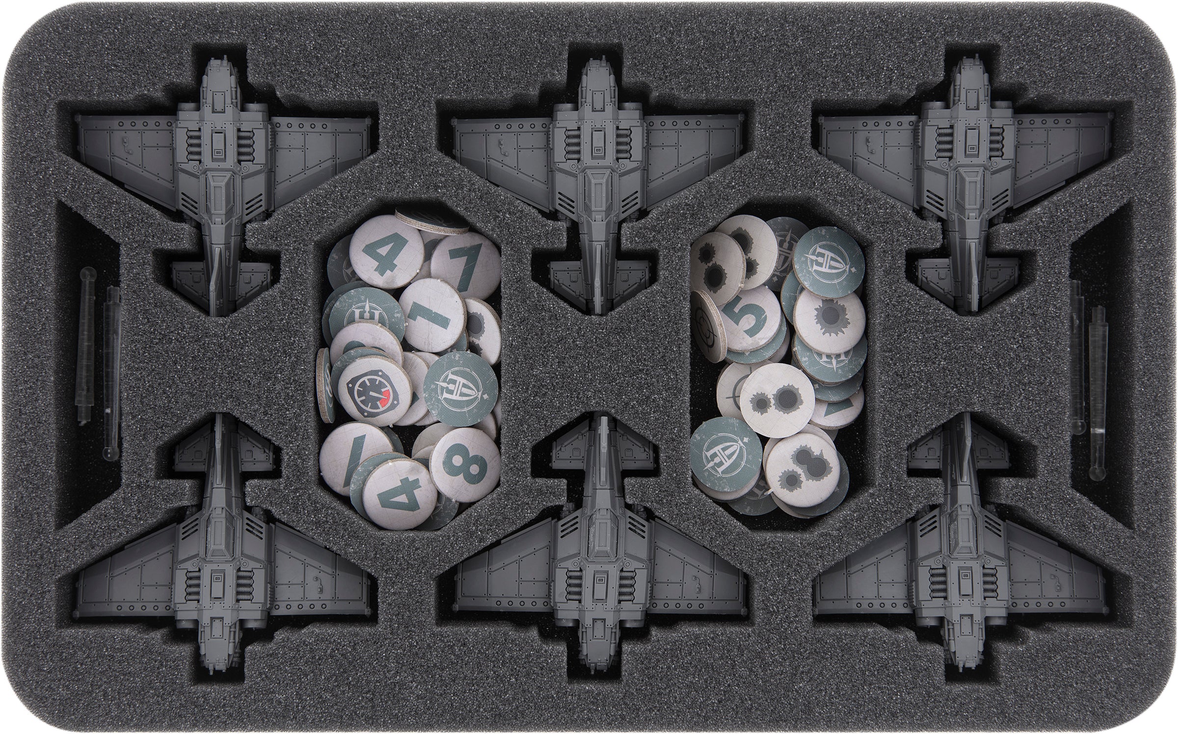 - 1 Half-Size foam tray for 6 Thunderbolt Fighters / Fury Fighter (HSMERJ030BO)