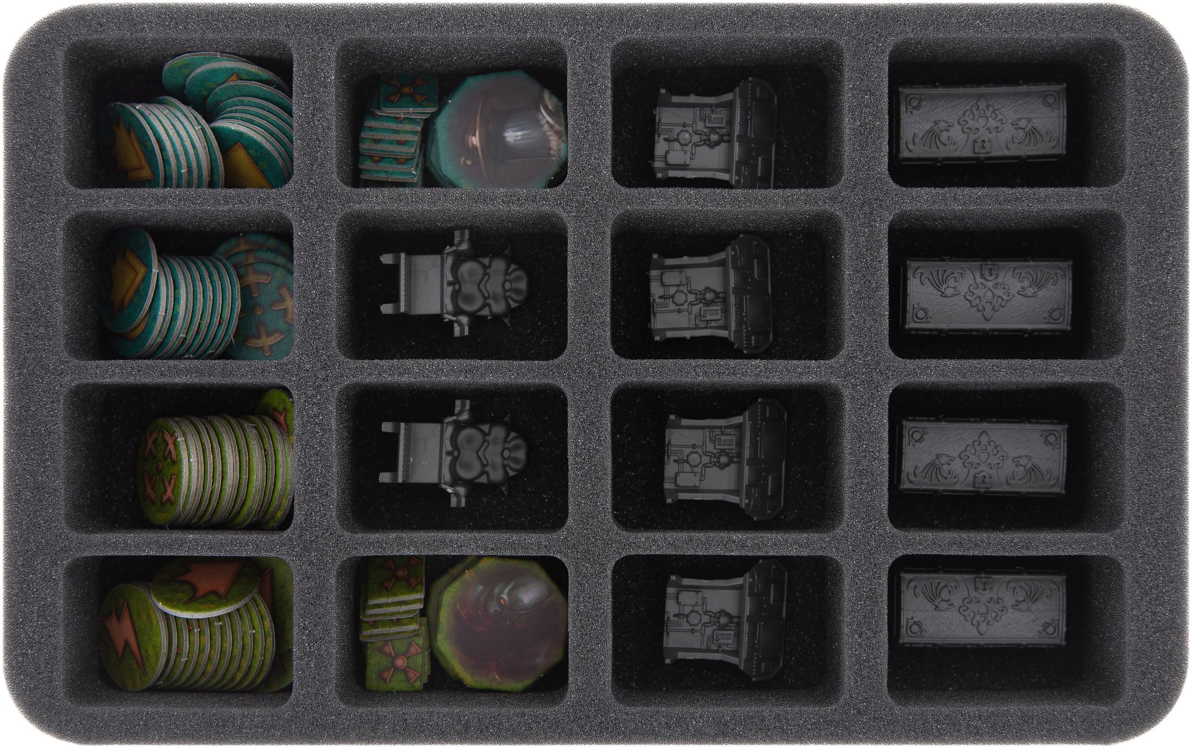- 1 Half-Size foam tray for 16 miniatures (HSCU060BO)