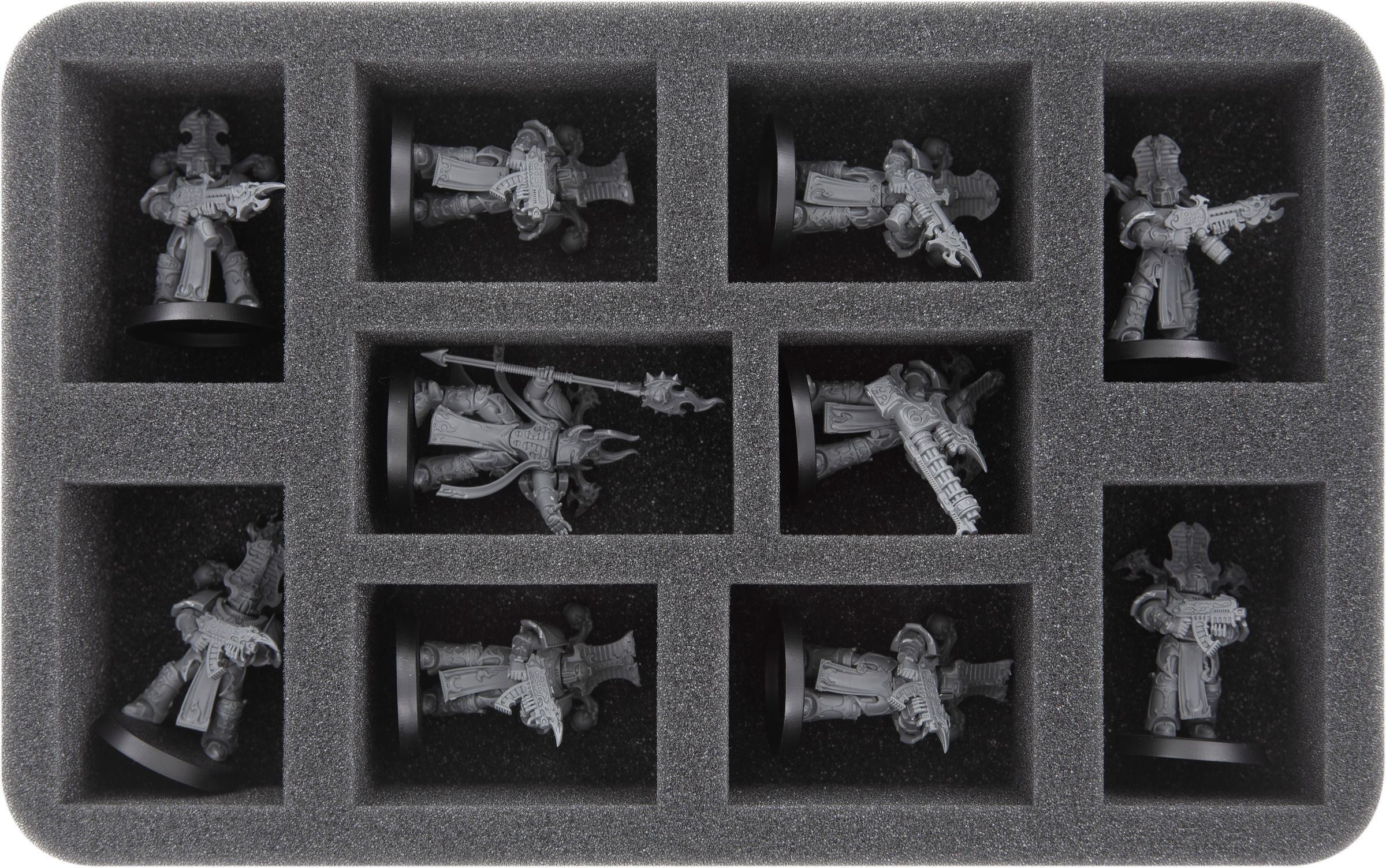 - 1 Half-Size foam tray with eight compartments for Chaos Spawns, Rubric Marines and miniatures with similar dimensions (HS095A002)