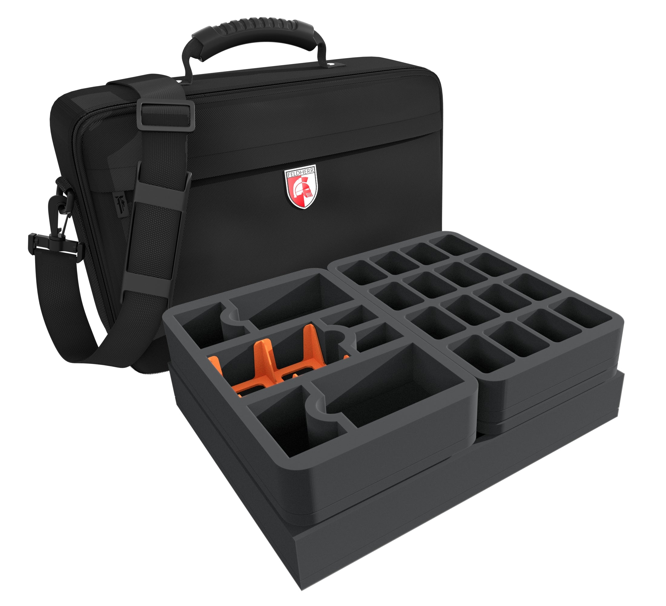 Thanks to the custom-fit compartments, the miniatures won’t move and even if the transport will be a little rough, the models stay in place. Embedded in high-quality, soft foam, the delicate parts of your figures will not bend or break. The colors of the painted miniatures are just as safe from chipping paint and scratches.