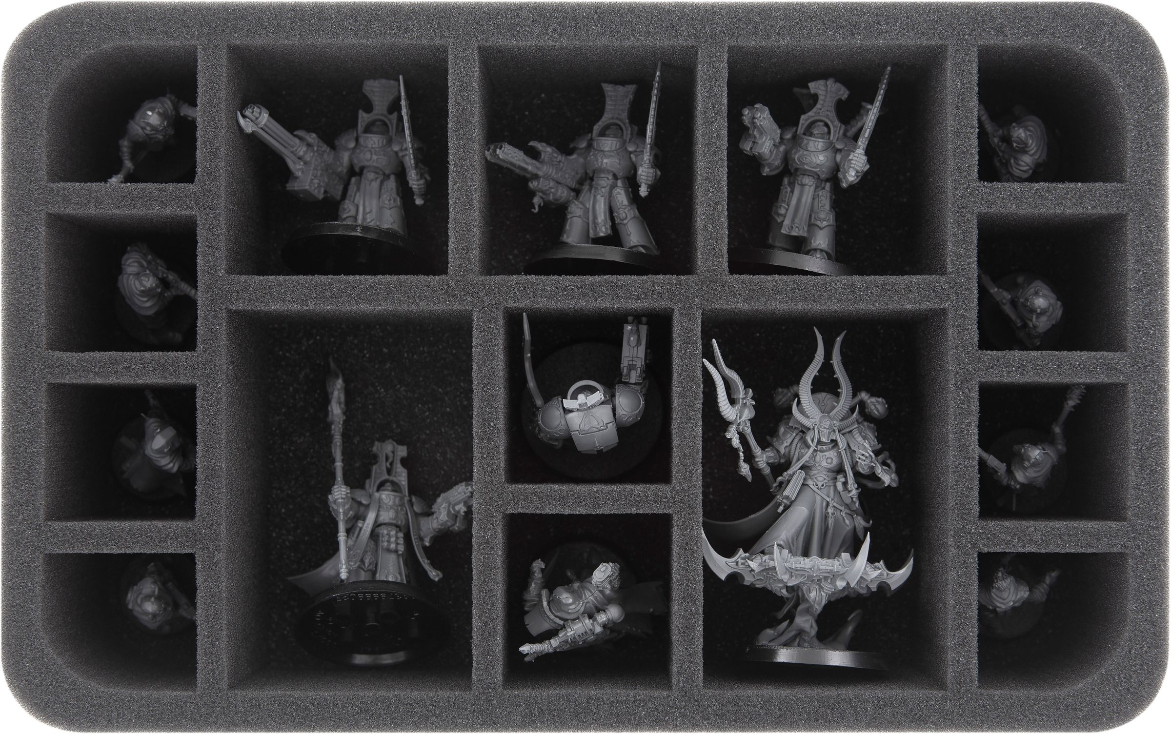 Securely keep the warriors of the XV Legion in the insert with 15 compartments. The different sized compartments are suitable for standard-sized miniatures, as well as larger Thousand Sons models.