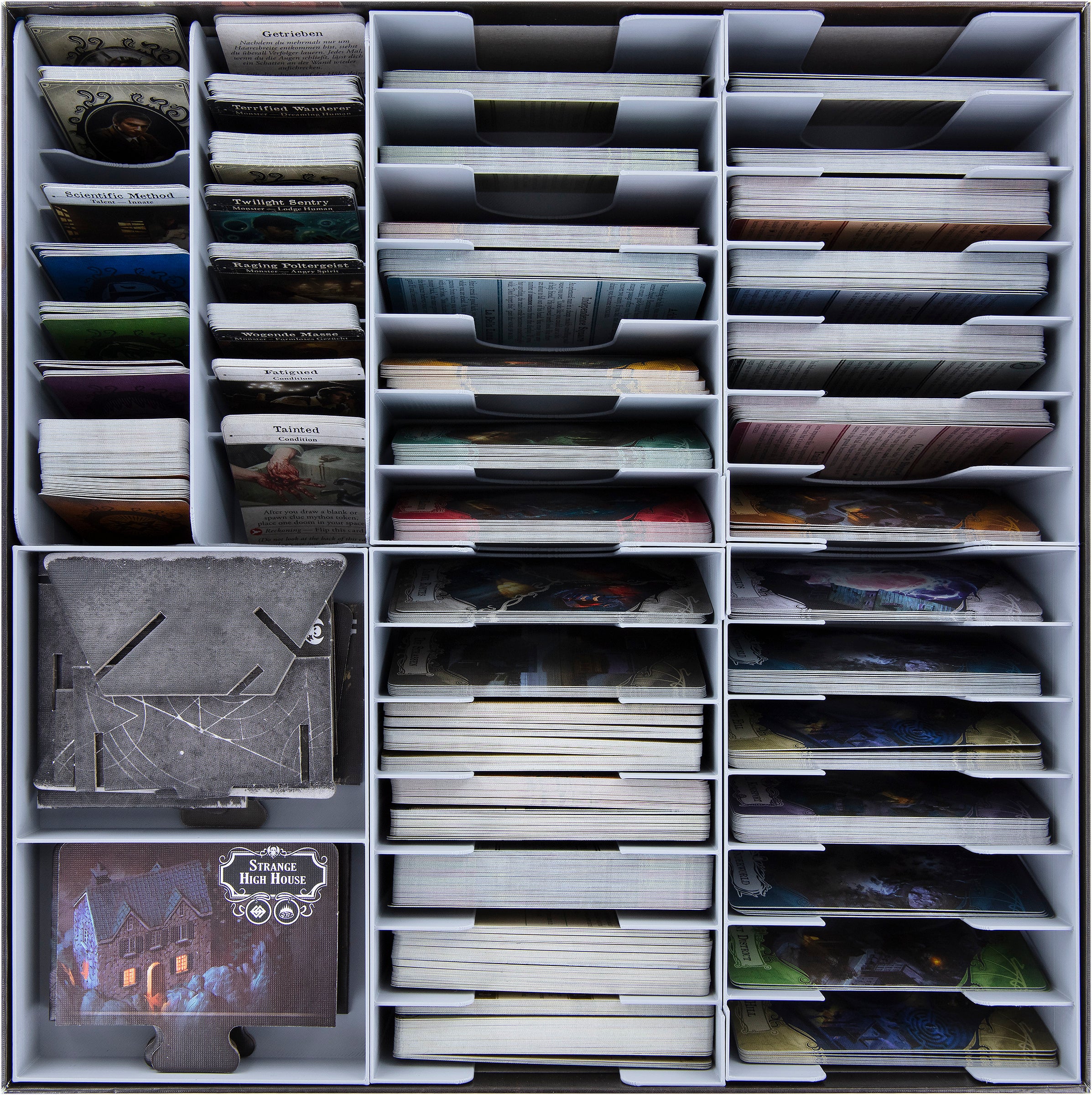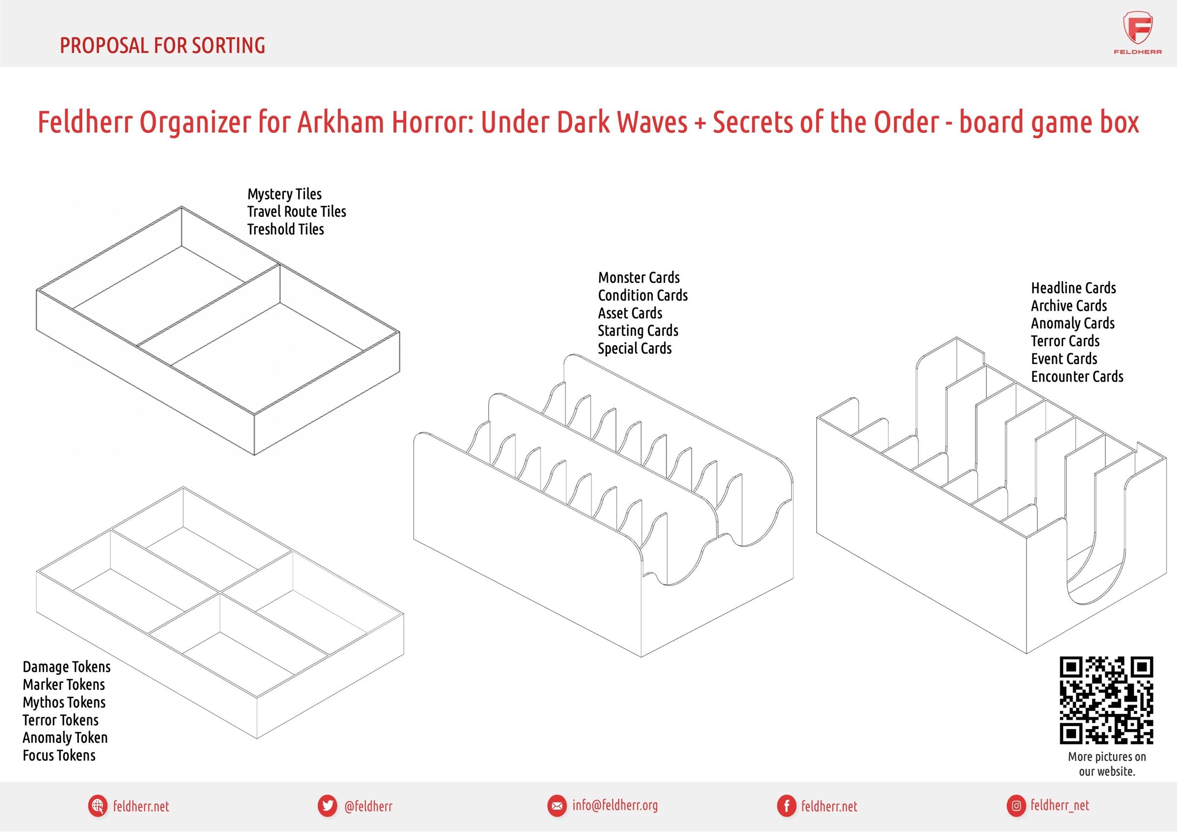 - The Organizer Set provides room for the entire game material of the two expansions “Under Dark Waves” and “Secrets of the Order” for Arkham Horror.