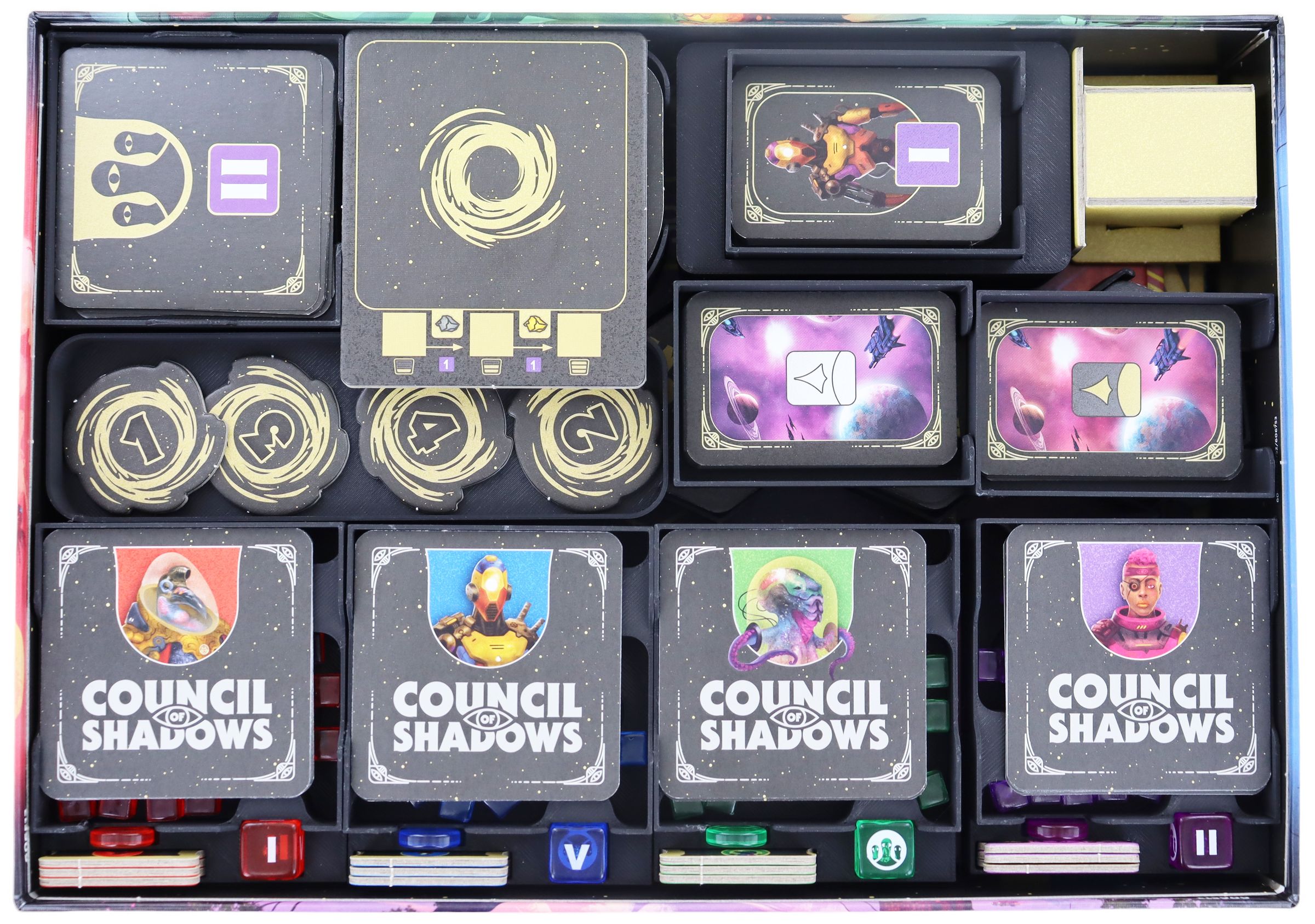 - The Organizer fits into the original "Council of Shadows" core game box.