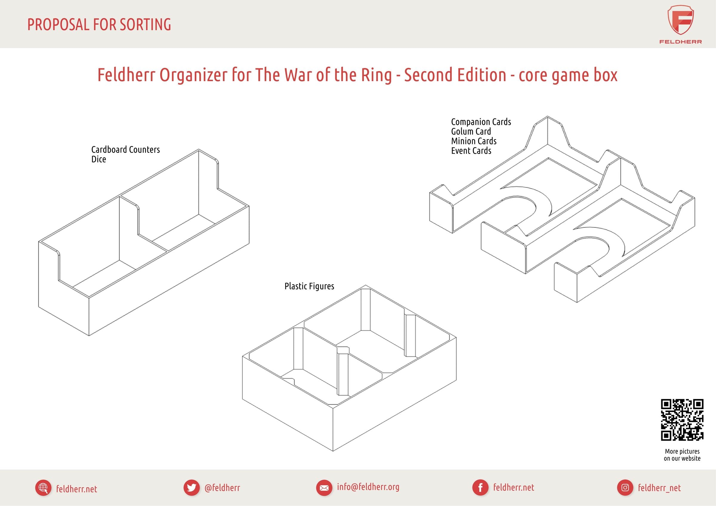 The core game of "The War of the Ring: Second Edition" already features countless game materials and cards and over 200 plastic miniatures. The game gets over 50 more miniatures and even more game material with the two expansions. With so many figures and game material, it is easy to lose track of everything. To remedy this, there is the matching Feldherr Organizer.