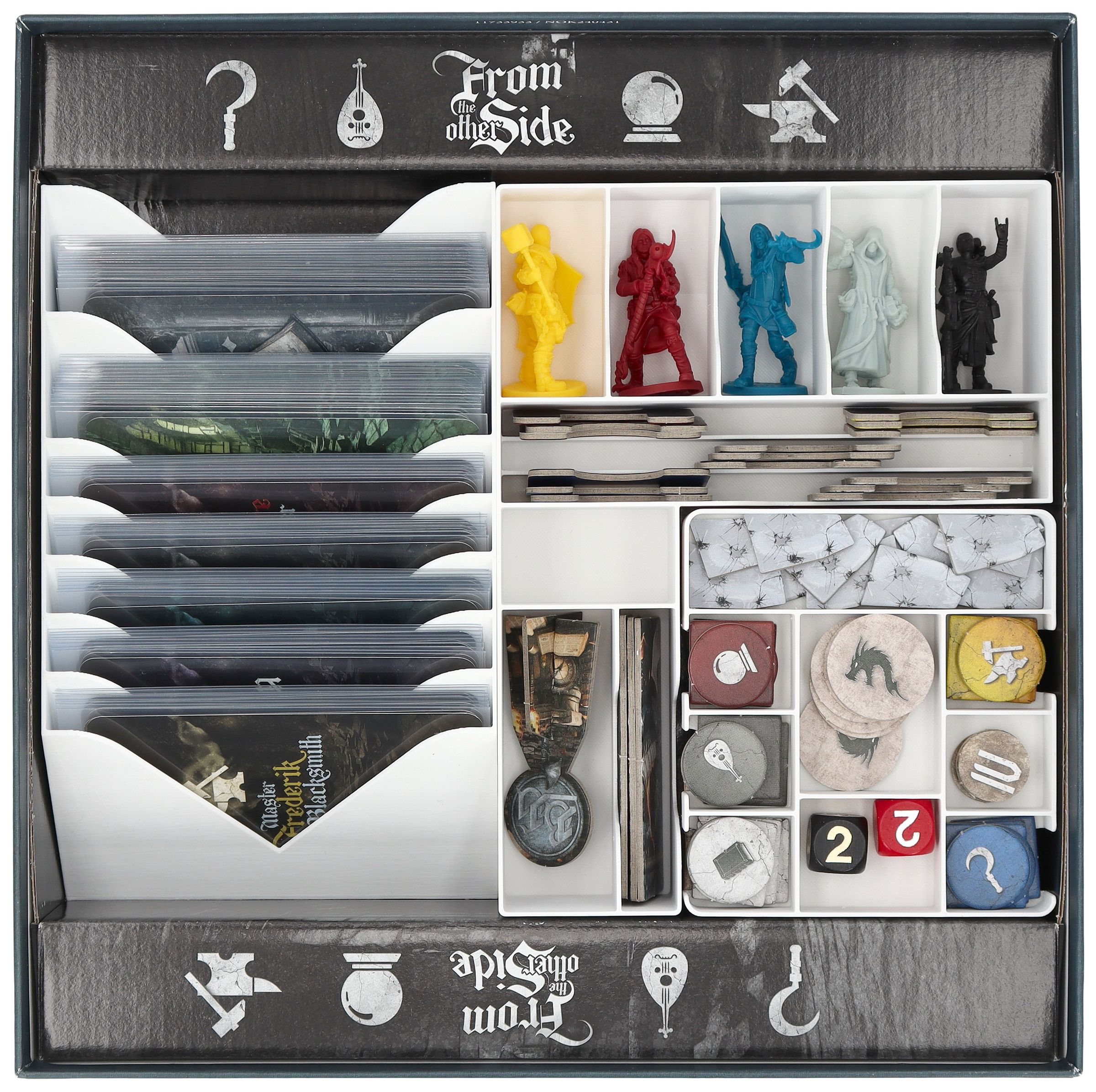 - The Organizer is made of sturdy plastic and fits perfectly into the original board game box from From The Other Side (Organizer dimensions: 285 x 206 x 51 mm).