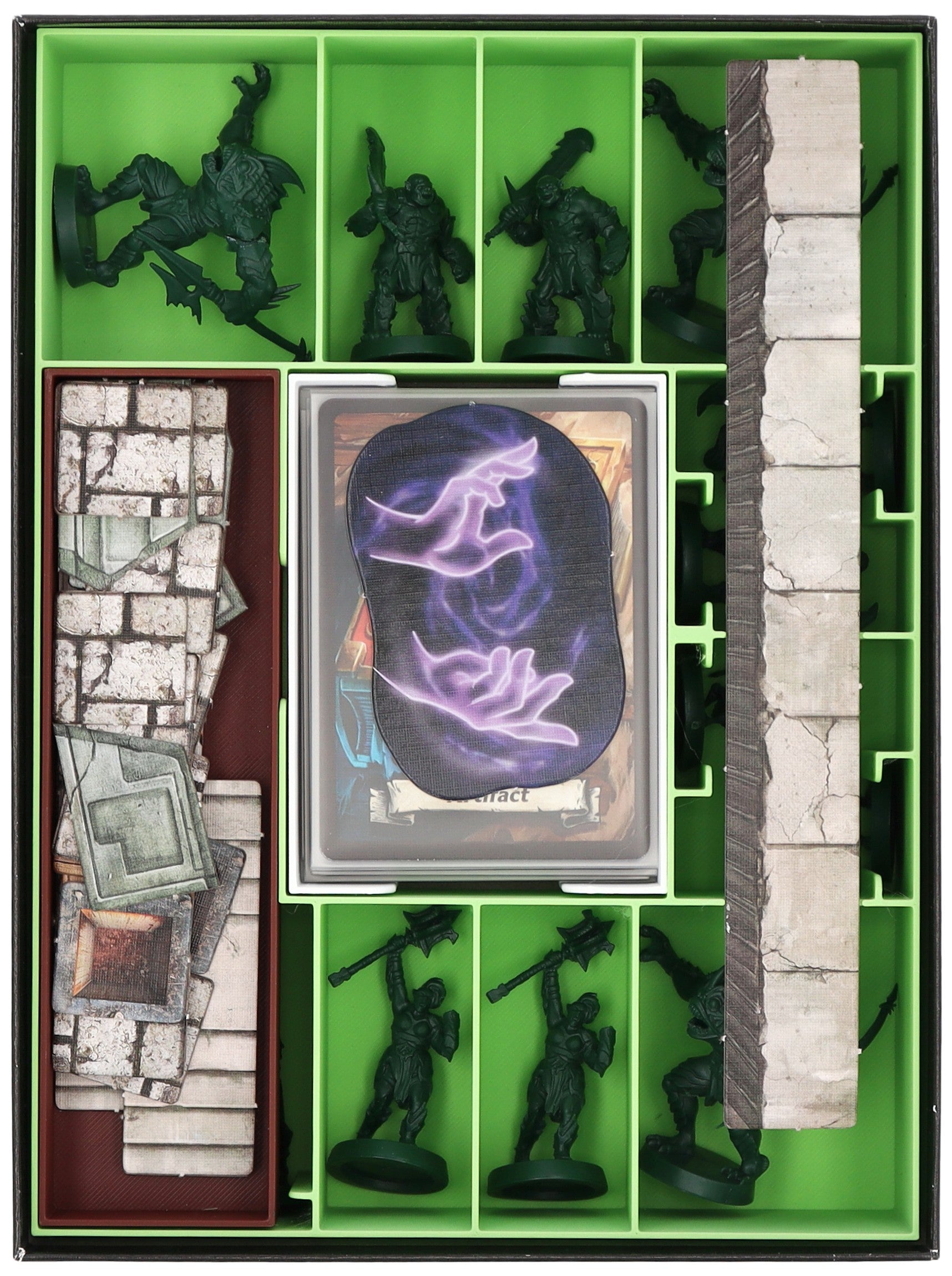 - Thanks to the lucid compartments, you'll find your miniatures and game material faster compared to the original plastic insert and can remove them more easily.