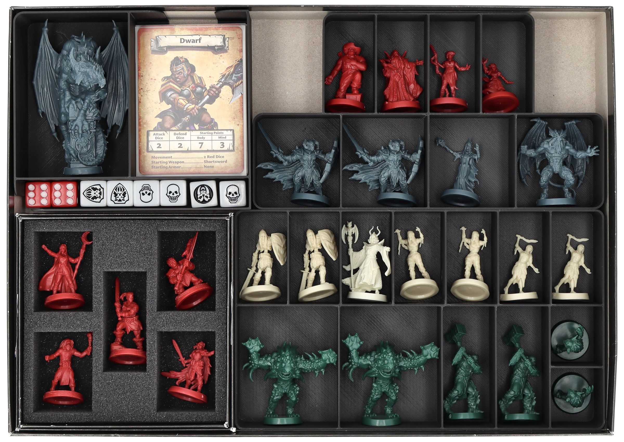 - The inserts replace the original insert and are equipped with individual compartments for miniatures, tokens, dice and cards.
