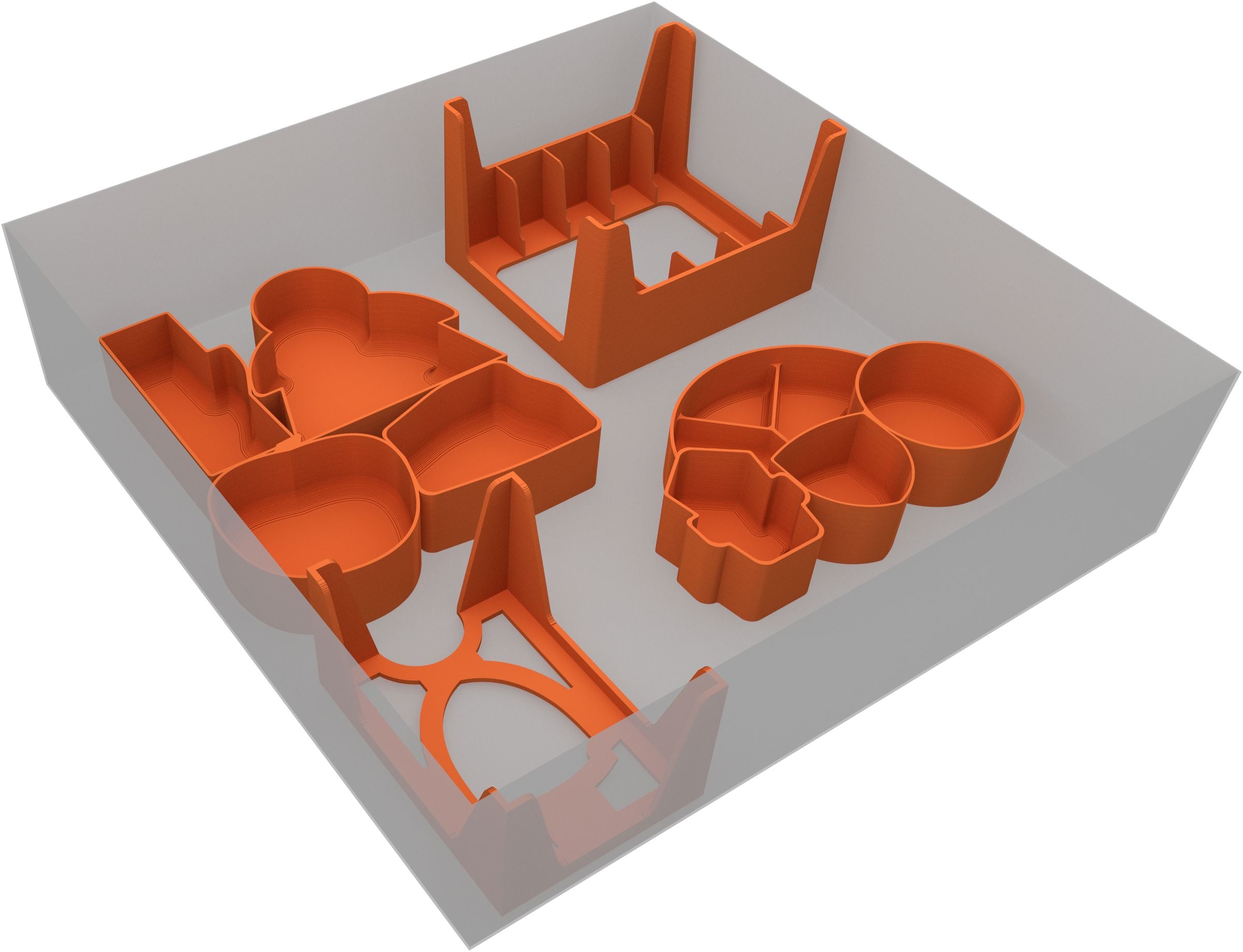 Lid off and play. Designed as a quick gaming solution, you can simply take the trays out of the box and place them on the gaming table. Because of the practical design, every player knows where to find the necessary game material. Hereby, nothing stands in the way of a quick game start.