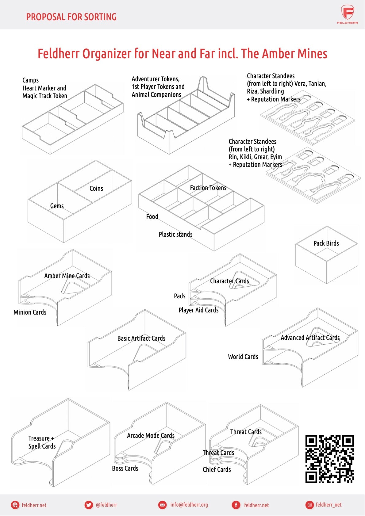 - The Organizer offers space for all game materials from the "Near and Far" core game and the expansion "The Amber Mines" by Red Raven Games