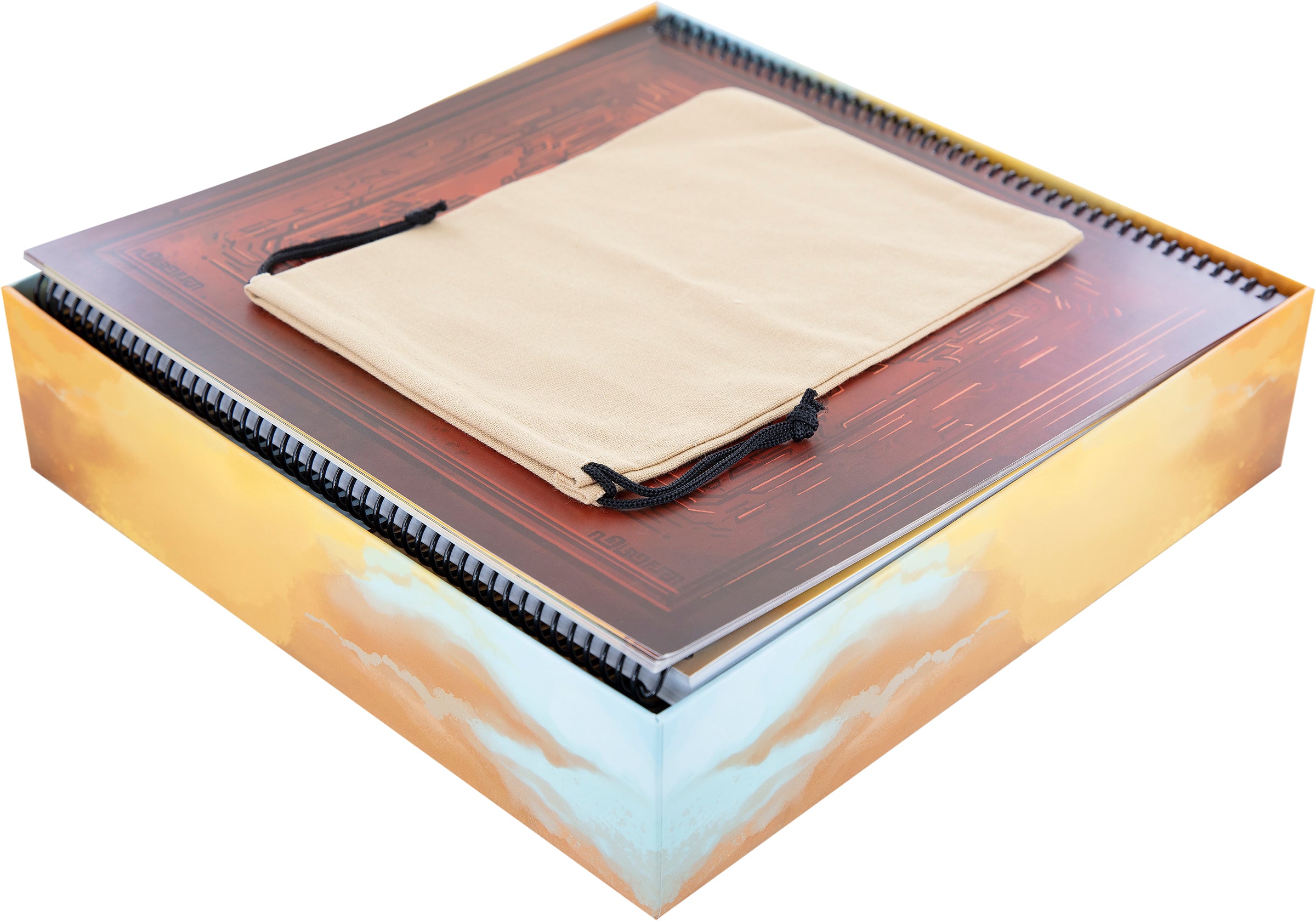 - 1 card holder with three compartments for Character-, Player Aid Cards, and Pads of Character Sheets