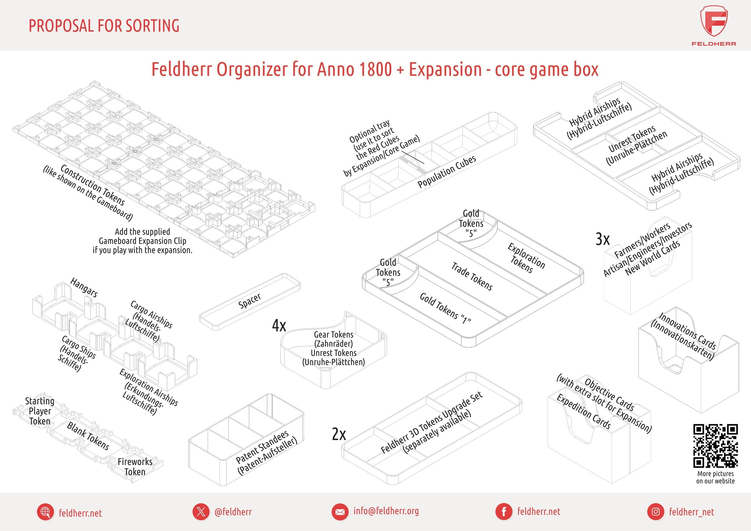 With this Feldherr Organizer Insert for Anno 1800, you can store the core game together with the Expansion in the base game box in the best organized way and sit back and relax, because on game night you'll have everything set up with no hazzle, in no time at all.