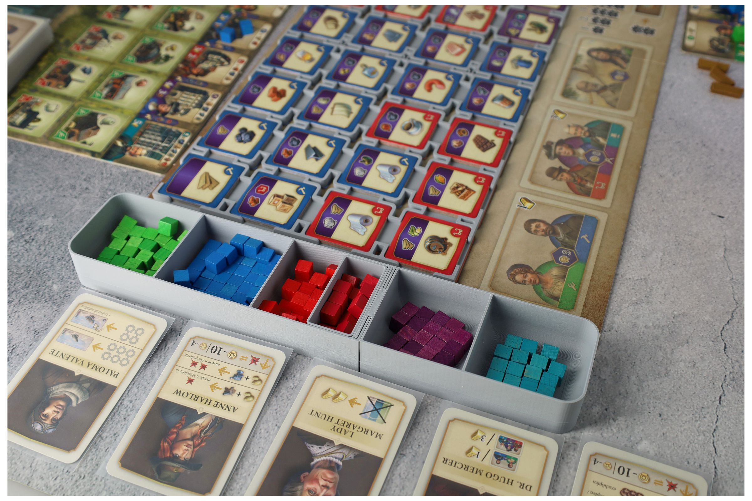 - The insert has 2 extra trays for sorting the 3D tokens. You can therefore keep the original cardboard tokens in the box.