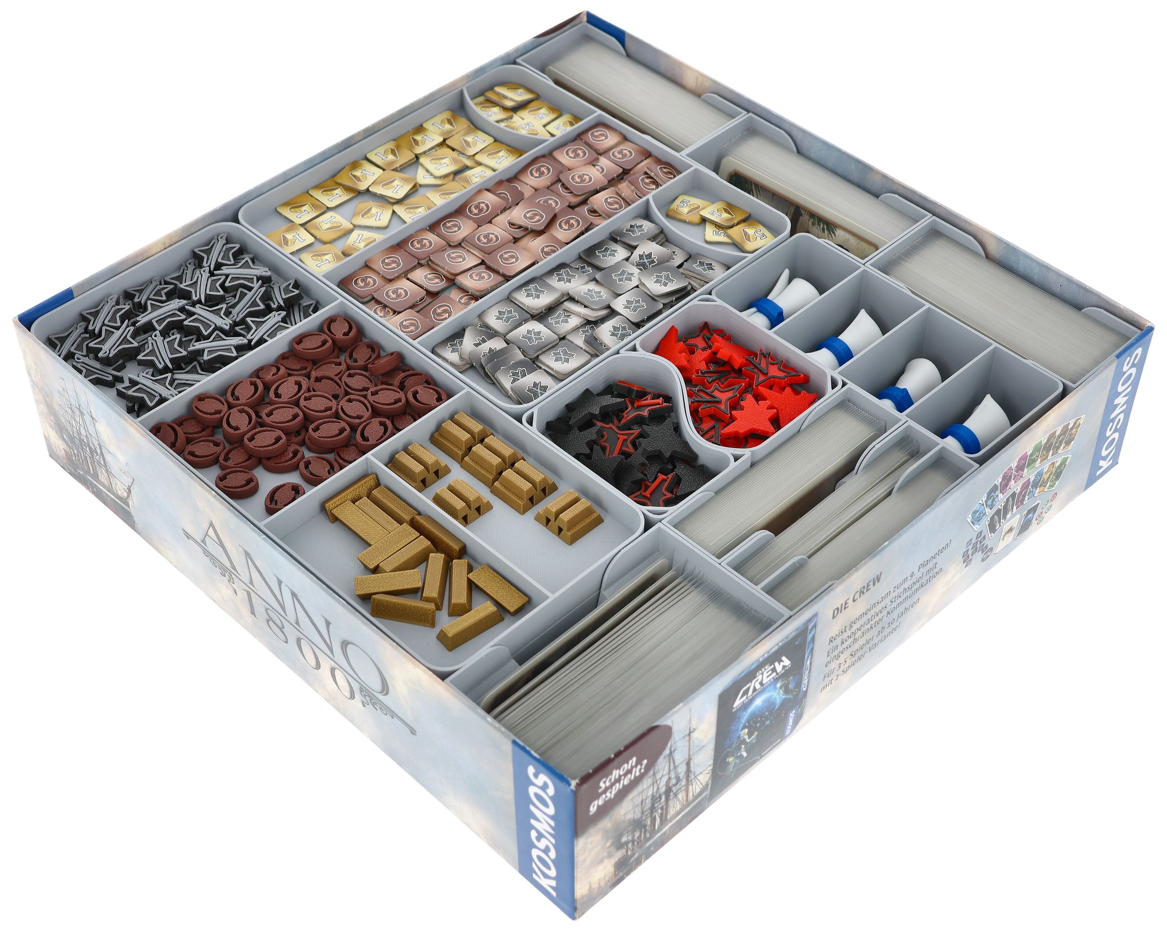 Feldherr Organizer Insert with 3D Tokens Upgrade Set for Anno 1800 + The Expansion - core game box