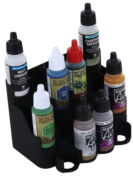 - The Feldherr Paint Rack fits paint bottles with a 25 mm diameter from Vallejo, Armypainter, Scalecolor and other manufacturers.