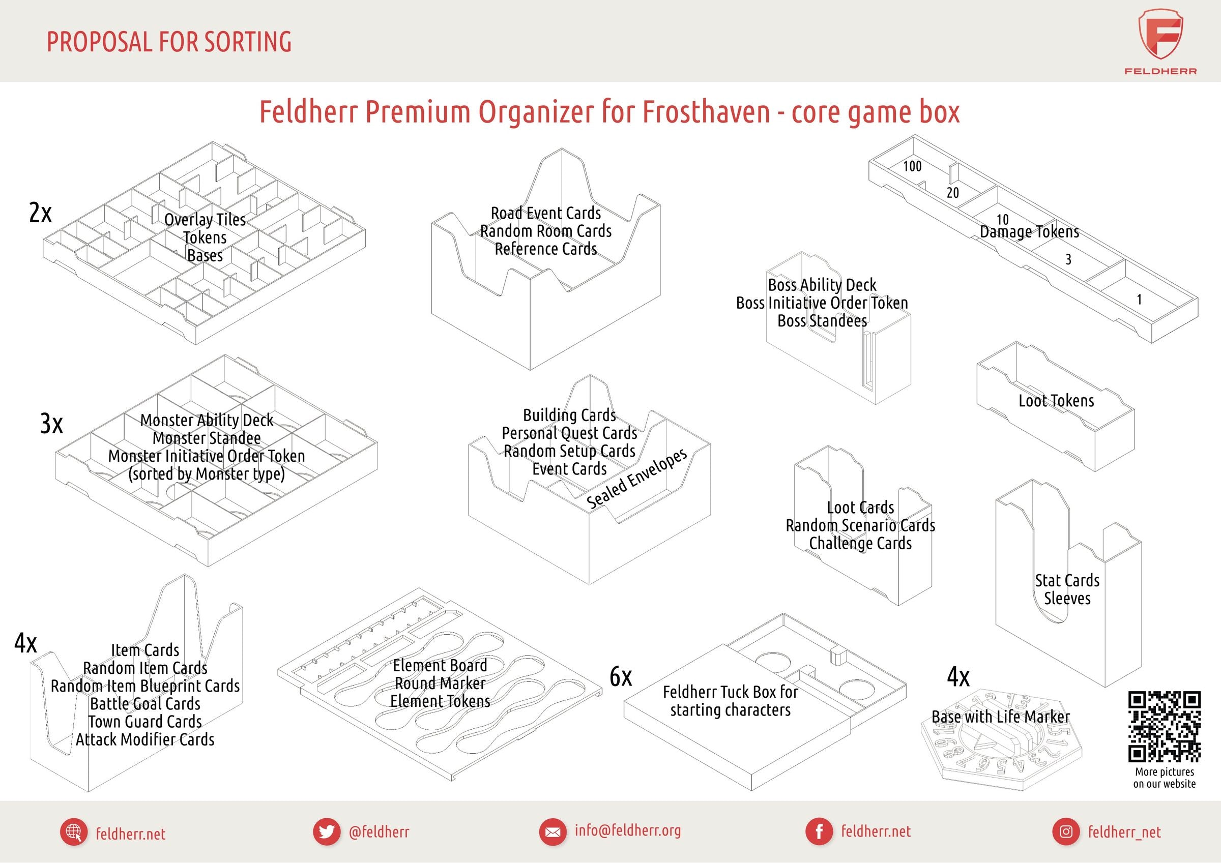 - Keep game components organized using Tuck Box inserts in the Large Tuck Boxes. Additional inserts for unlocked Large Tuck Boxes are available with the Feldherr Set 3D85Set.
