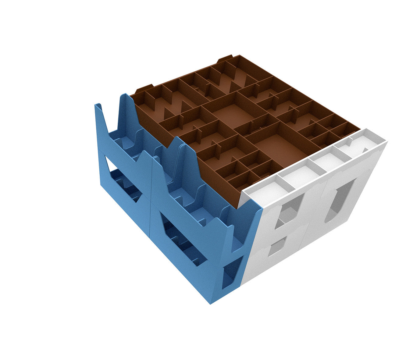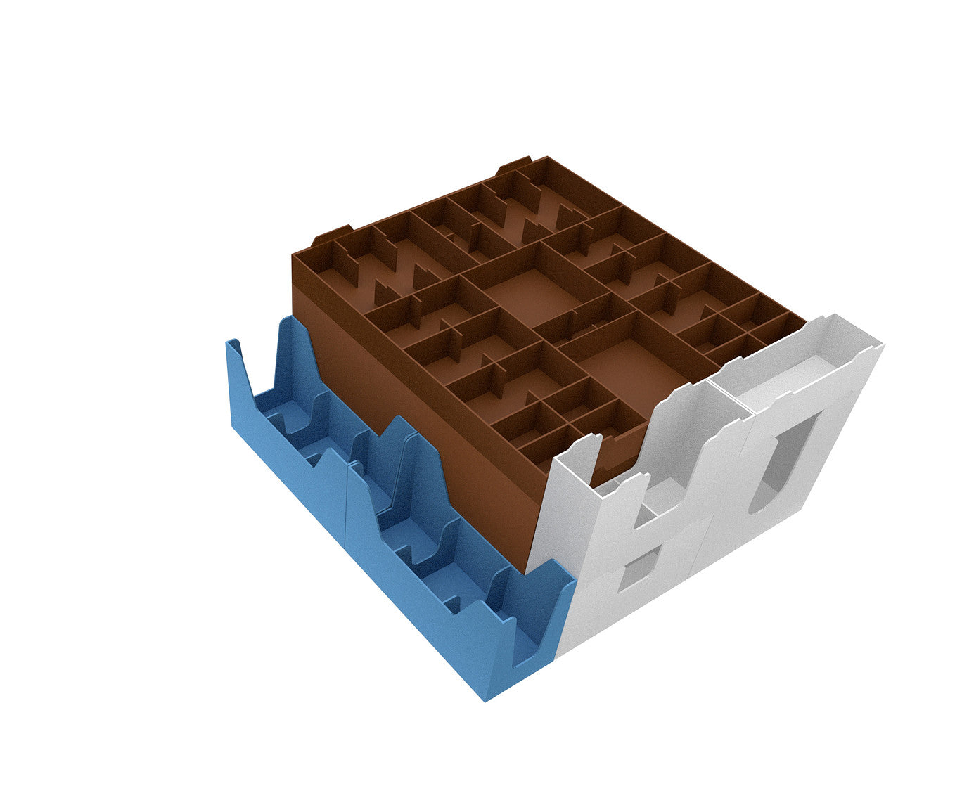 - 2 plastic token trays, each with 32 compartments for small-sized game material and accessories.