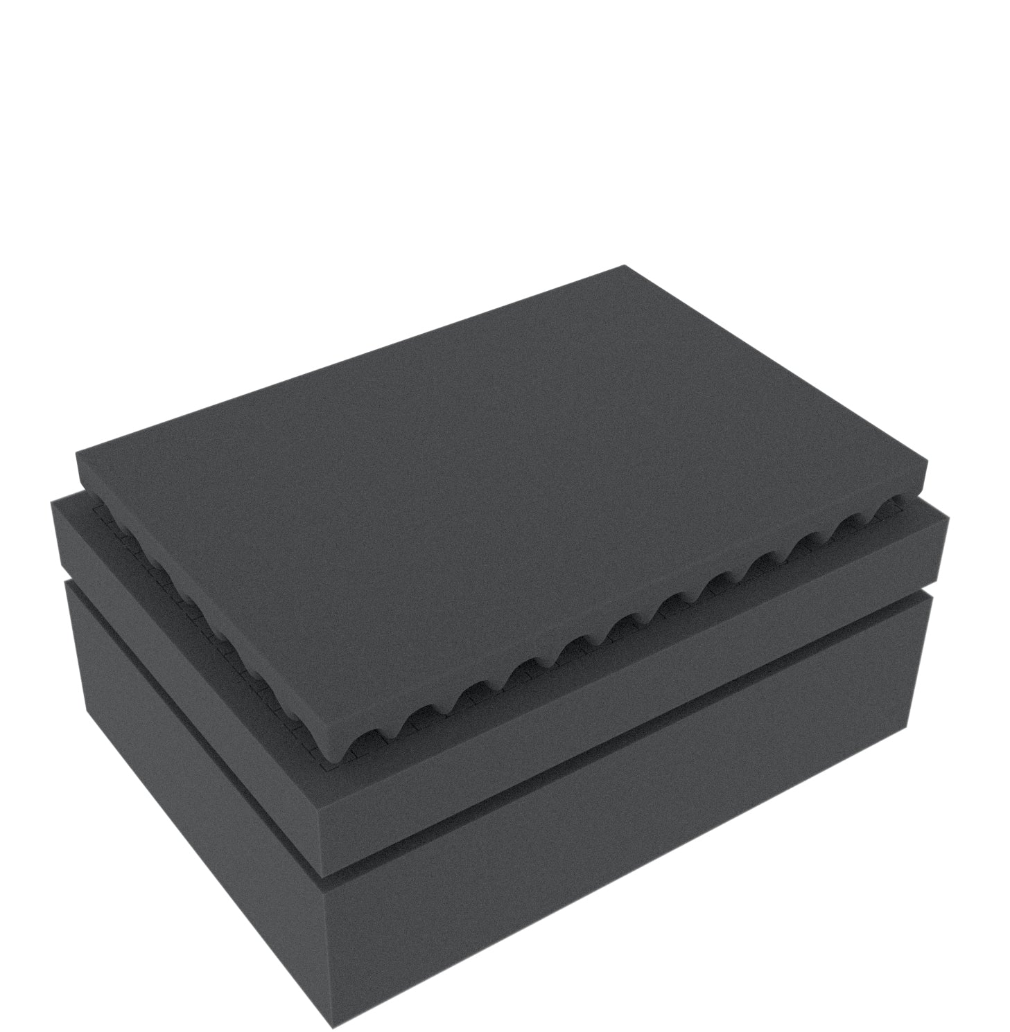 The set contains a 10 mm thick base. The convoluted foam as topper is cut to fit the lid of the Eurobox from Auer Packaging. Since it is equipped with a self-adhesive foil, you do not need any further tools. All you have to do is remove the foil from the foam insert and glue the self-adhesive side into the hinged lid of the Eurobox. The entire set can therefore be designed, adapted and used according to your personal wishes without any extra tools.
