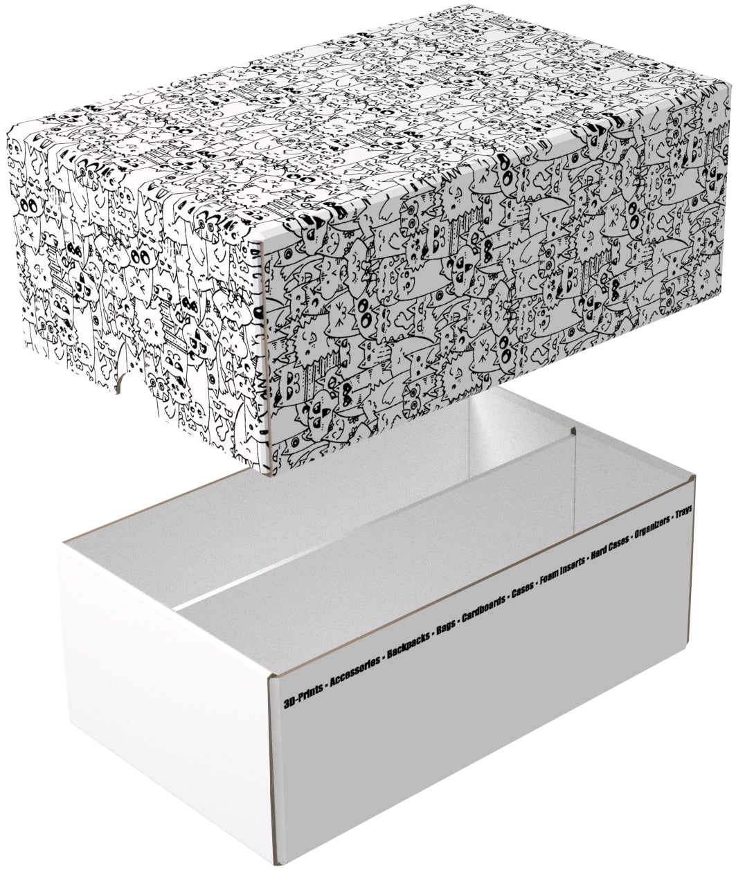 A partition in the middle of the box divides it into two equal-sized compartments. This allows the cards to be lined up neatly without mixing during transport.
