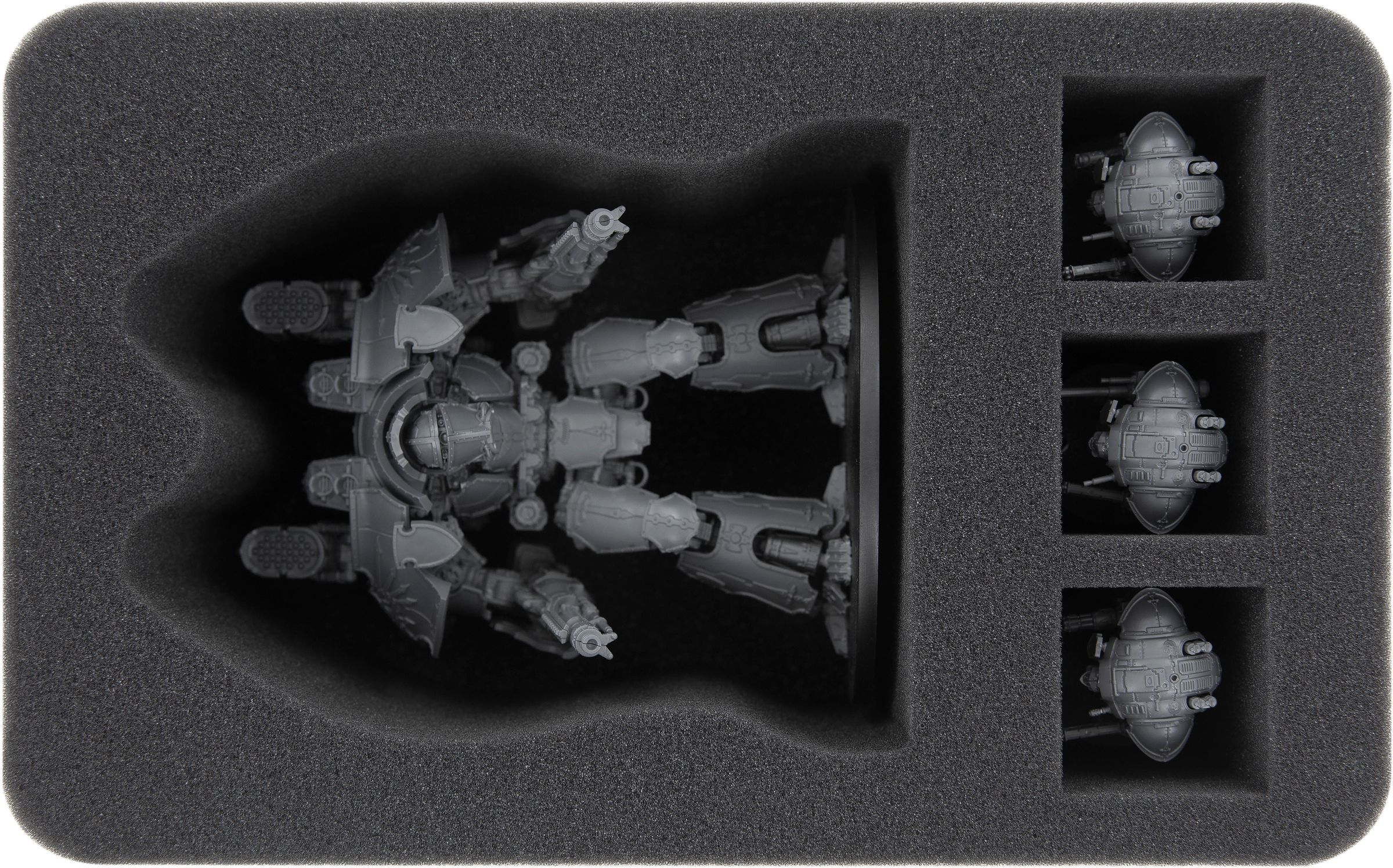- 1 foam tray with 4 compartments for 1 Warlord Titan und 3 Questoris Knights (HSMEFQ110BO)