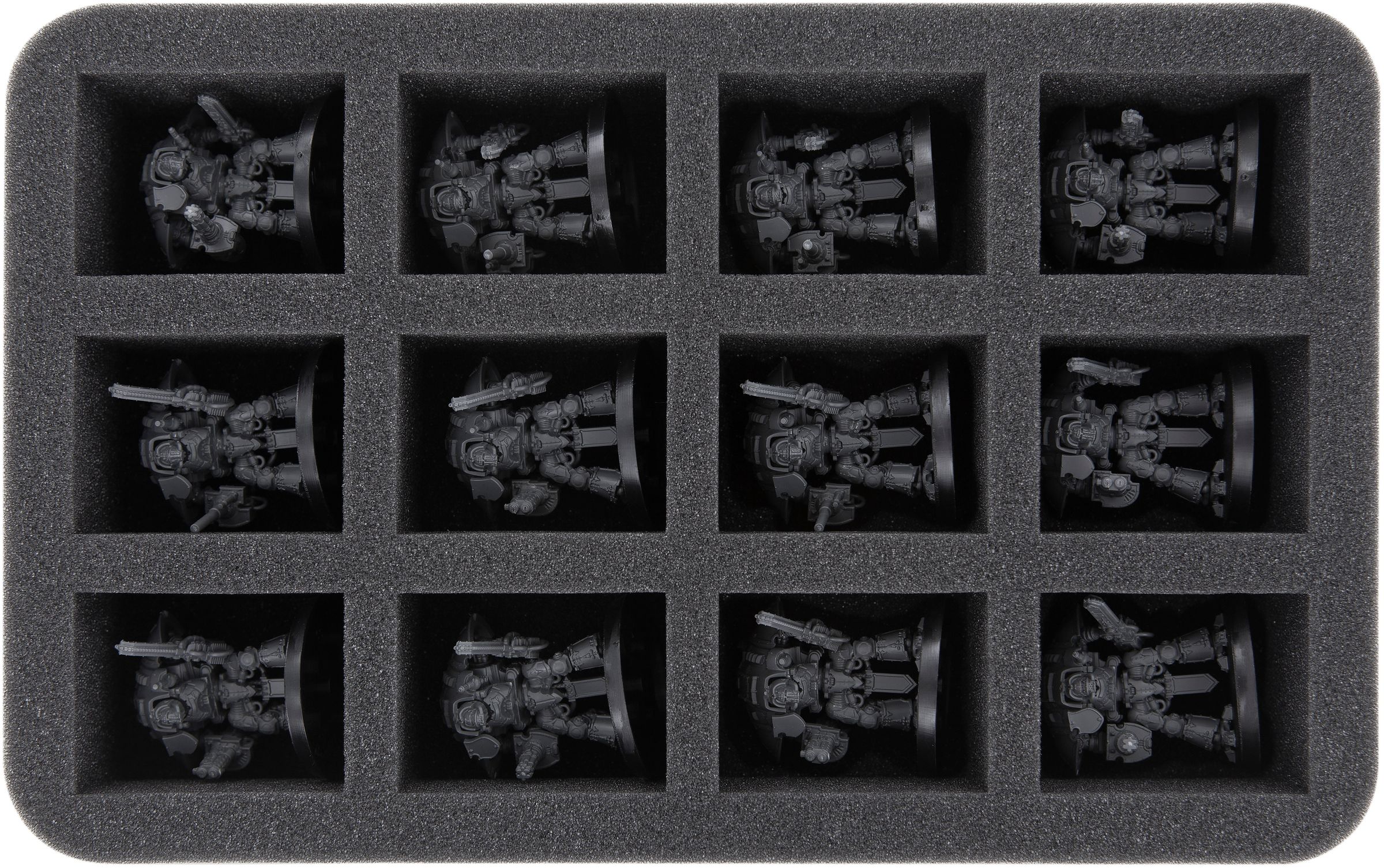 HSMECO075BO: This foam tray allows you to store six medium-sized miniatures of your titan legion. The six same-sized compartments are ideally suited for Acastus Knights Porphyrion.