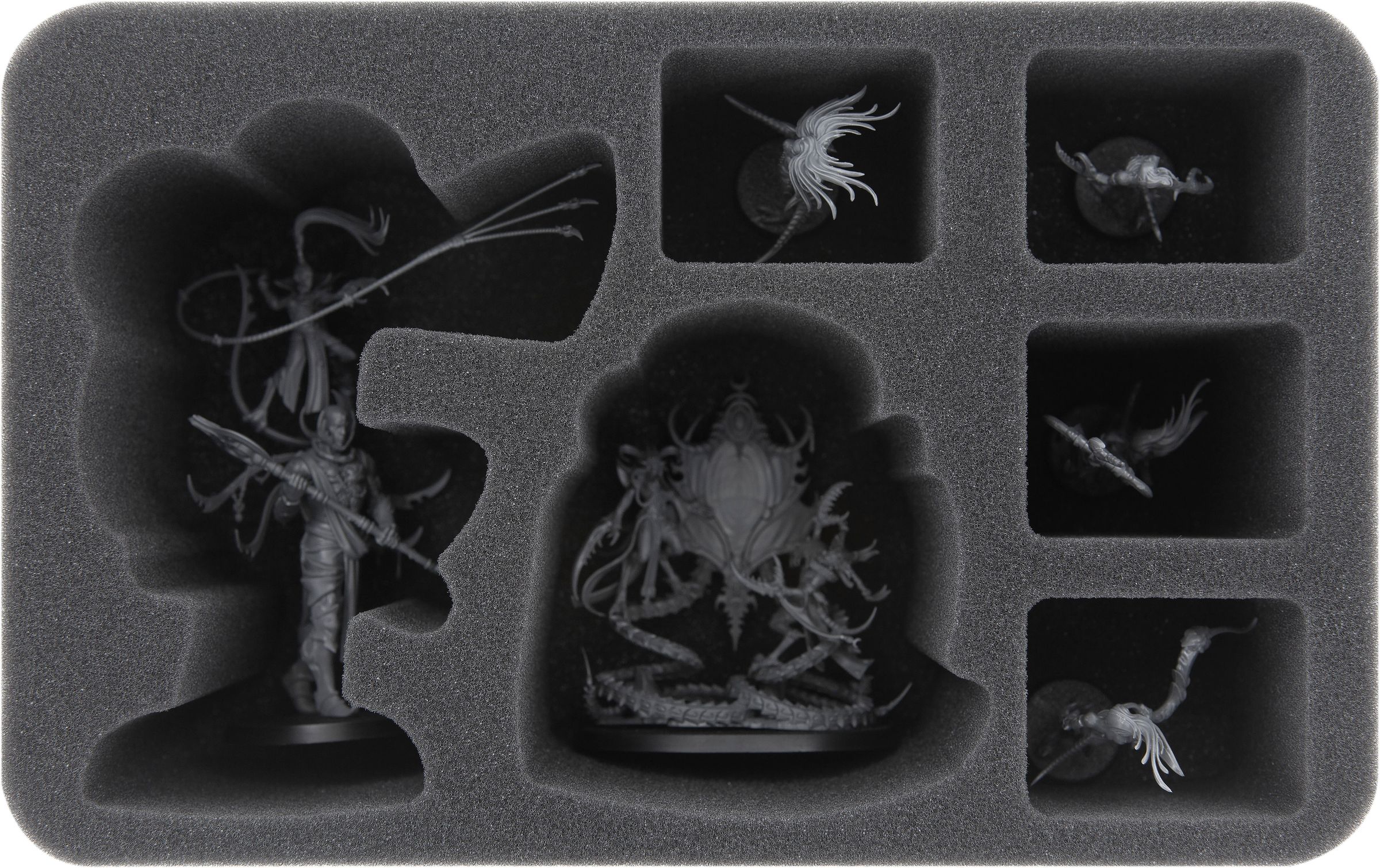 - 1 Half-Size foam tray with 6 compartments for Syll'esske, Contorted Epitome, Herald of Slaanesh, The Masque, and models with similar dimensions (HSMEOF095BO)