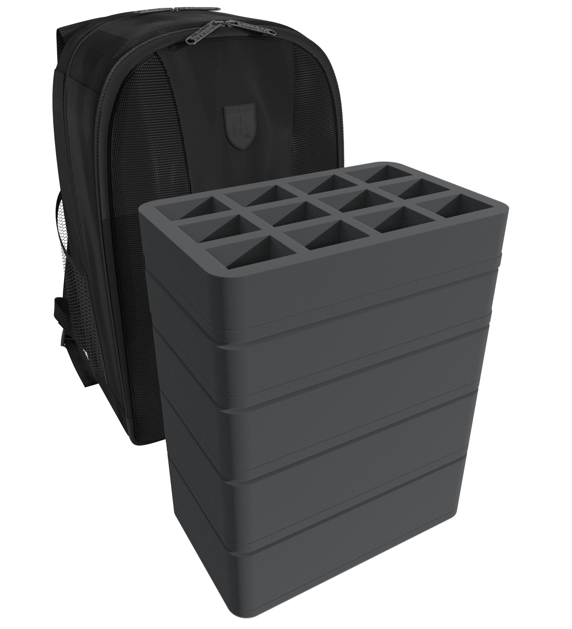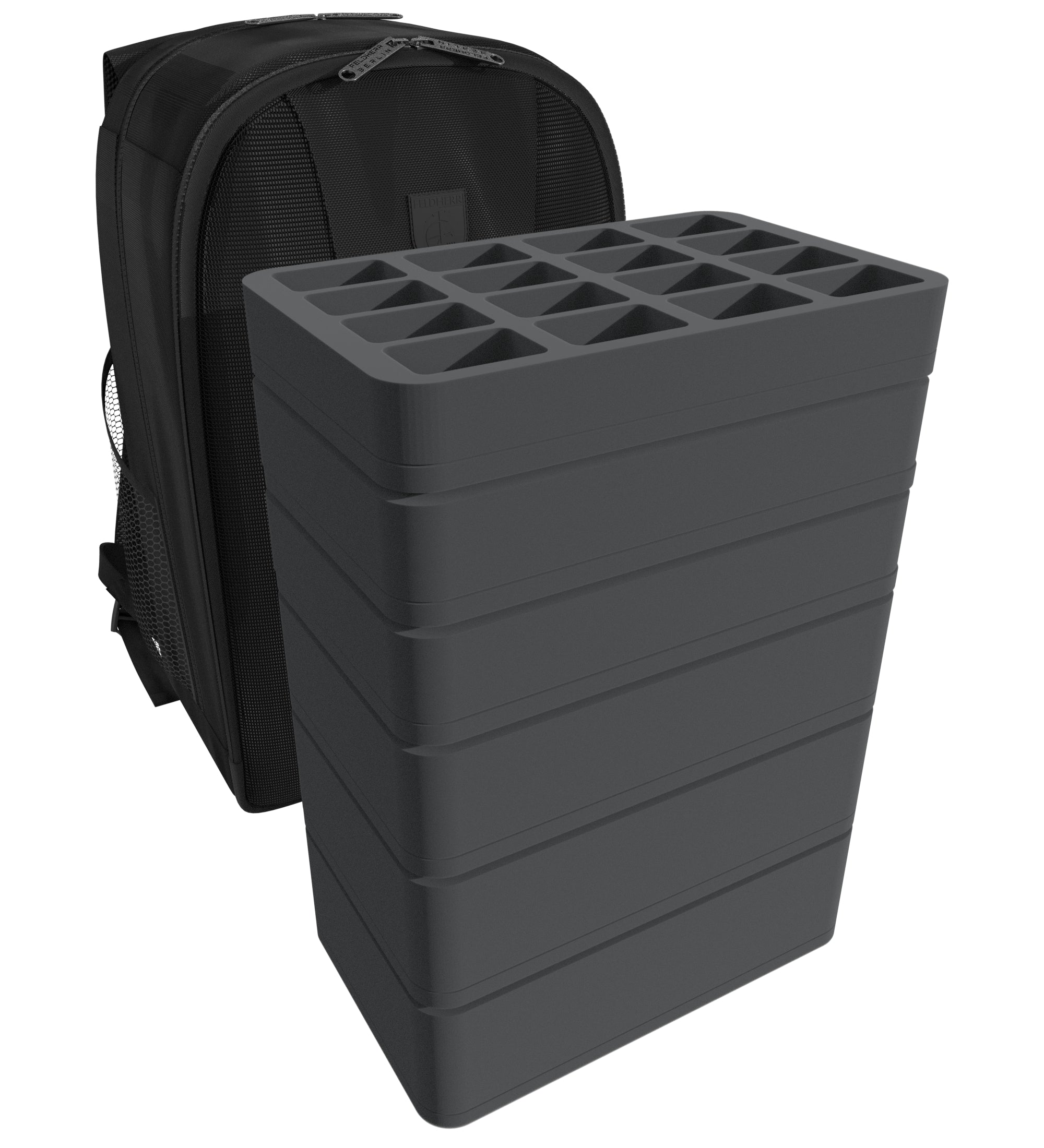 This Backpack, filled with matching Feldherr foam trays, holds up to 76 miniatures of your crews + cards and game accessories.
