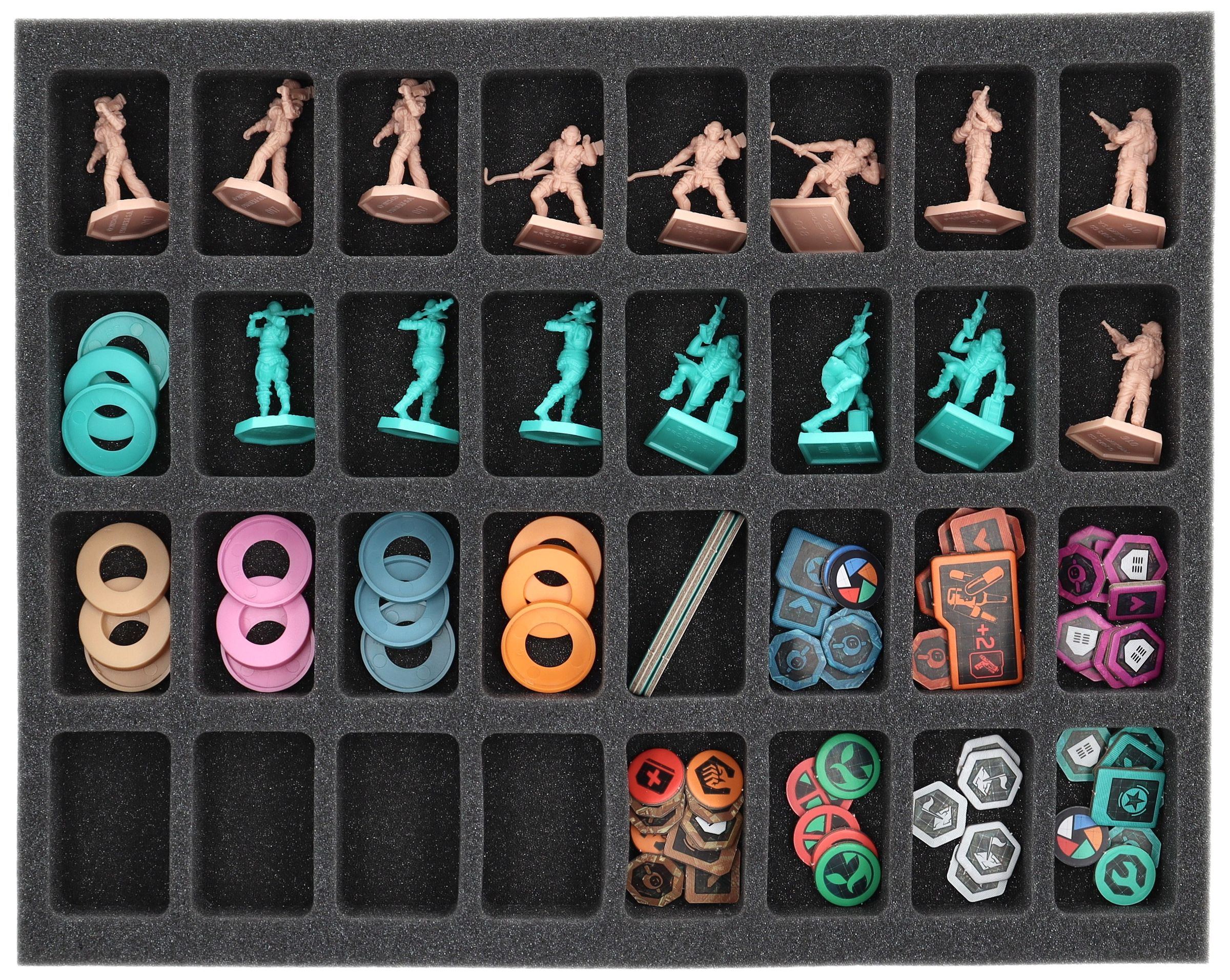 - Optimum organization: The foam insert fits exactly into the original Exclusive Edition board game box and ensures that all 101 miniatures from the core game and the 11 miniatures from the Side Gig expansion are safely stowed away.