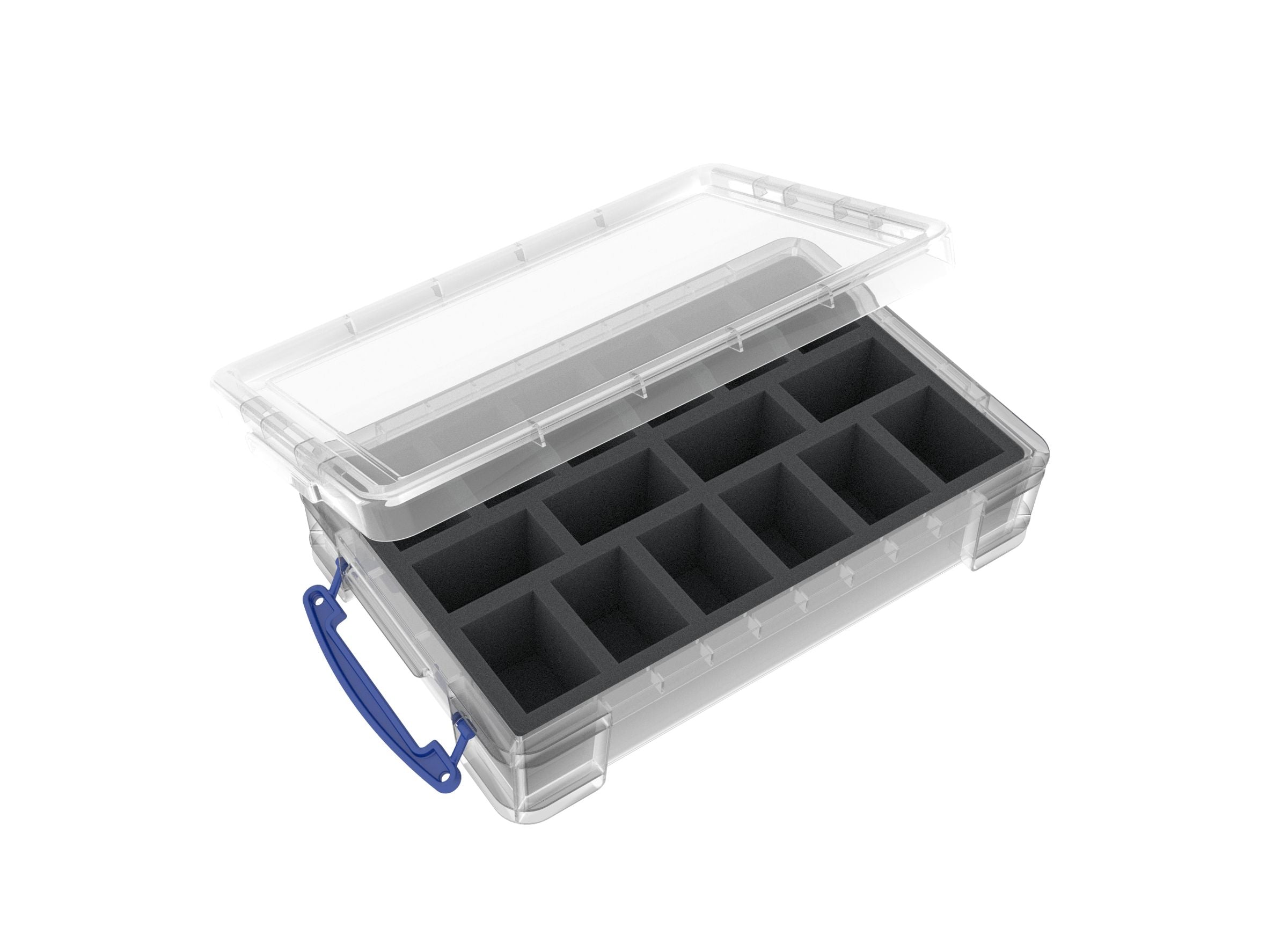This Feldherr foam set fits perfectly into your 4 liter Really Useful Box. Thanks to the high-quality foam inserts, your miniatures are well protected and always arrive safely at the table.