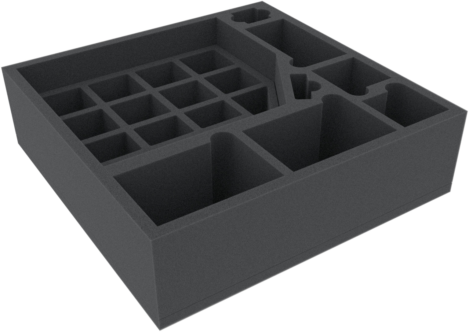 The foam tray is divided into 1 large compartment for the foam inlay and 7 additional compartments for storing the game components.